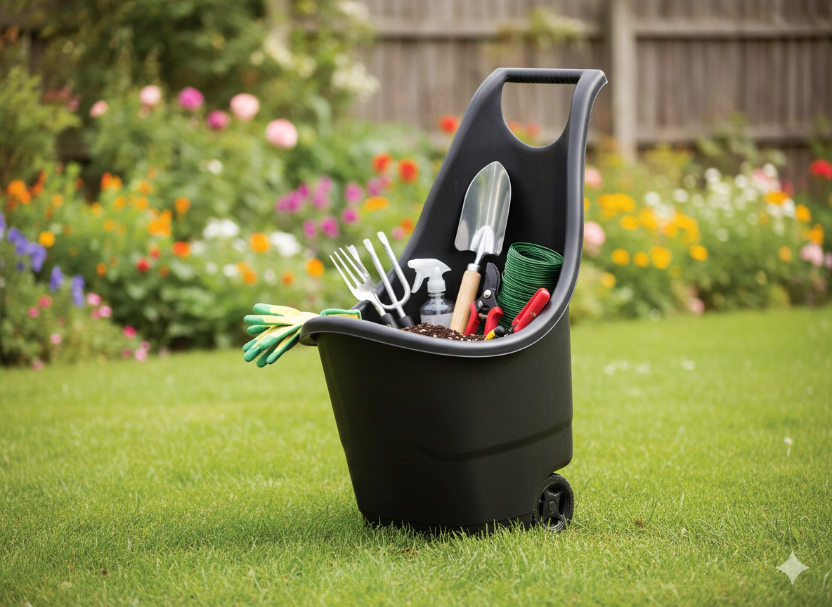 A tartós műanyag ellenáll az esőnek és a napnak, így a kocsi egész szezonban megőrzi megjelenését és funkcionalitását. A függőleges kialakításnak és a lekerekített peremnek köszönhetően könnyű a kezelés, és kevés helyet foglal a tárolás során.