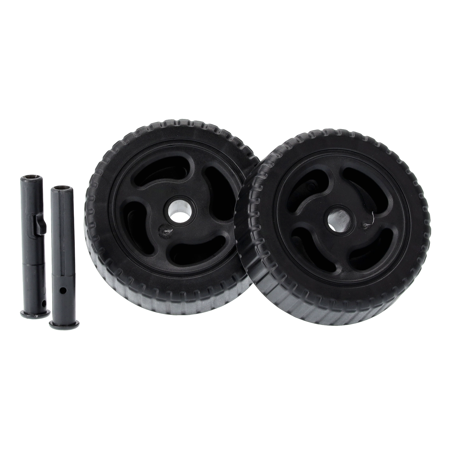 Két masszív műanyag kerék és a kiegyensúlyozott súlypont révén könnyedén mozog gyepen, kavicson és térkövön is, felesleges megerőltetés nélkül.