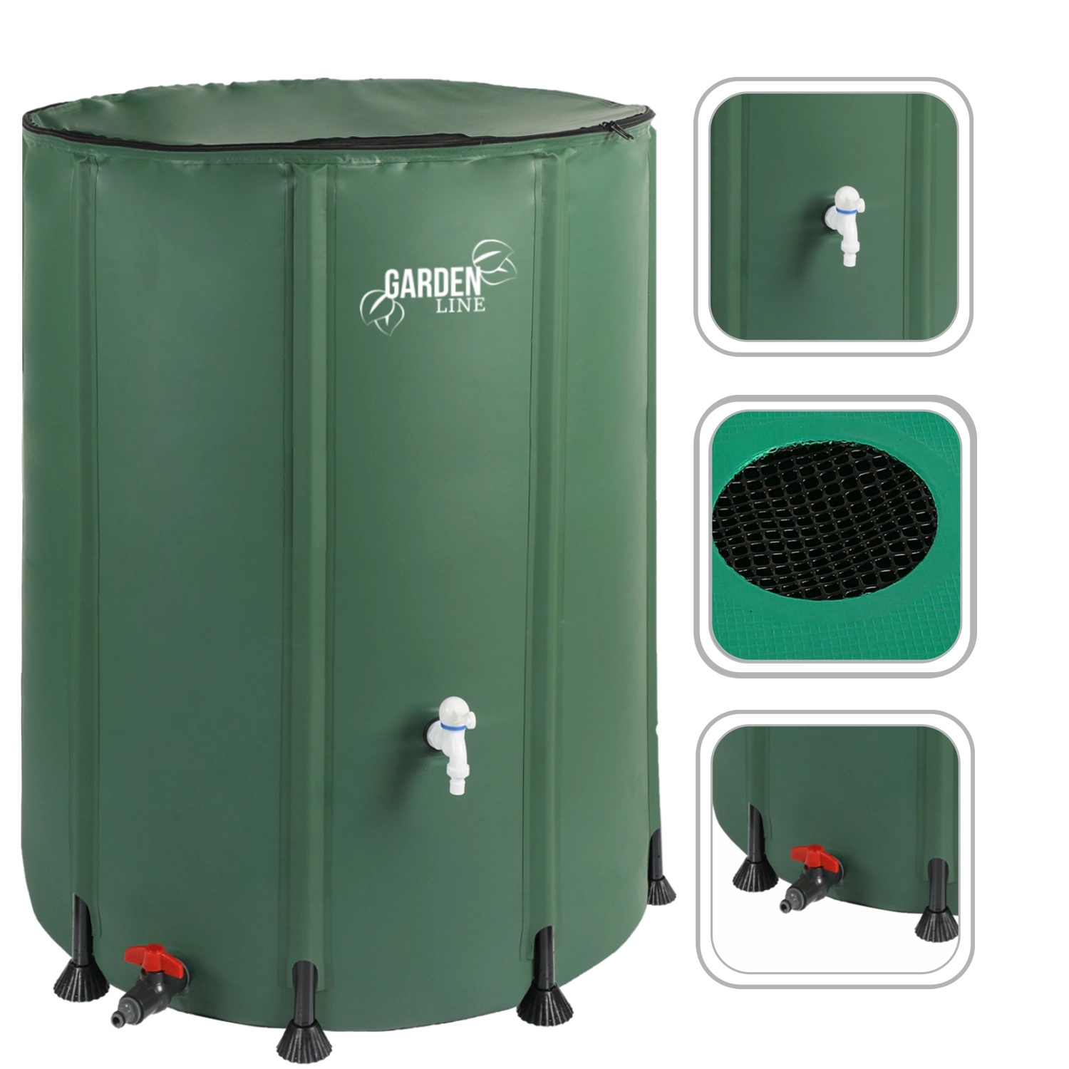 Gyűjtse az esővizet okosan és takarékosan a 1000 l-es összecsukható hordóval. A strapabíró 1000D PVC szövet, a cipzáras fedél a könnyű hozzáférésért és a gyors összeszerelés ideális választássá teszik a kert öntözéséhez, szerszámok mosásához és ház körüli munkákhoz.
