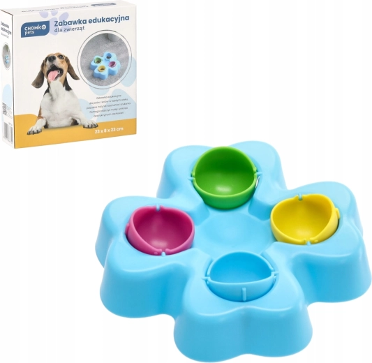 Az interaktív fejlesztőjáték színes tartókkal vidám kihívássá alakítja az etetést vagy a jutalmazást. Az állat eltolja, megemeli vagy elforgatja az egyes fedőket, hogy elérje a falatokat – lassítja a habzsolást, leköti a figyelmet és erősíti a koncentrációt. A tartós műanyag alap könnyen karbantartható, a sima élek pedig biztonságos használatot biztosítanak.