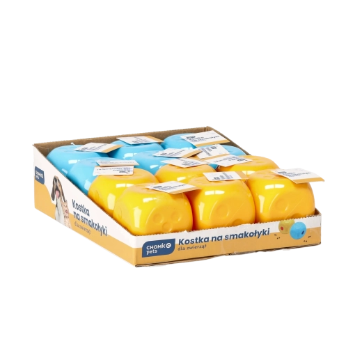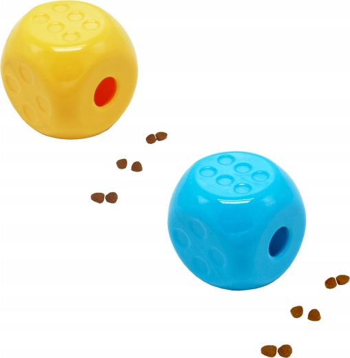 Okos játék, amely egyszerre szórakoztat és stimulál. A 6,5 × 6,5 × 6,5 cm méretű, tartós műanyagból készült interaktív jutalomfalat-kocka gurulás és játék közben fokozatosan adagolja a falatokat. Támogatja a mentális stimulációt, a lassabb etetést és a természetes vadászösztönt. Könnyen tisztítható, és alkalmas kis- és közepes testű kutyáknak, valamint macskáknak. A szín véletlenszerű.