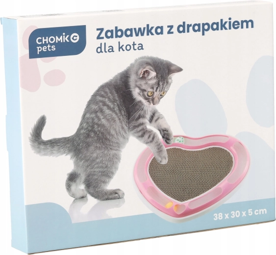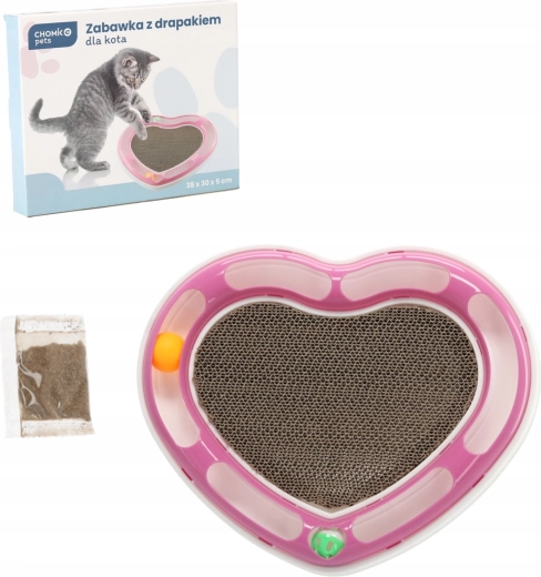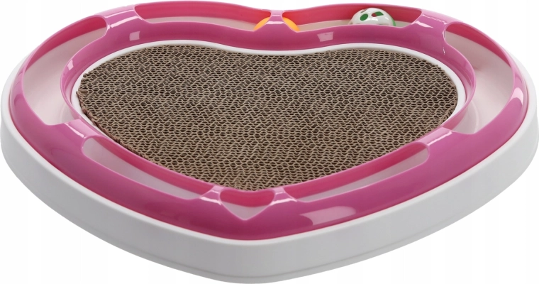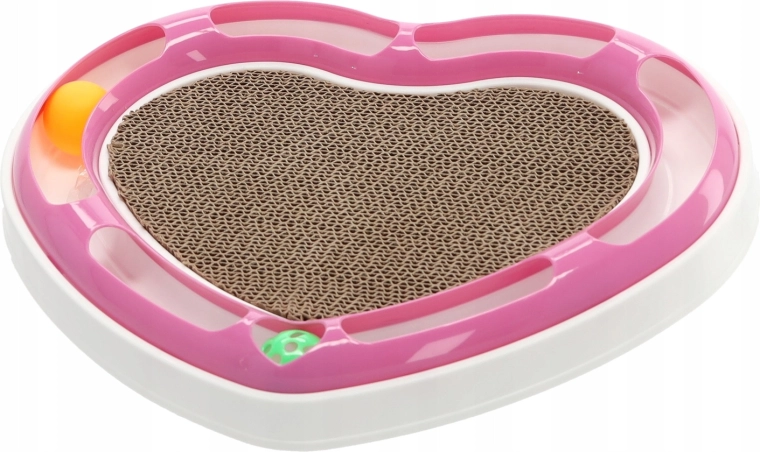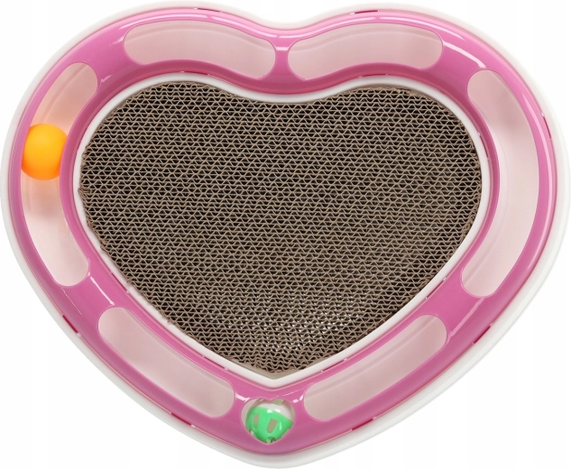 Ez a szív alakú, design-játék két, macskák által legkedveltebb tevékenységet egyesít: a golyók üldözését a pályán és a karton kaparófelületen való kaparást. A körpályába rejtett golyók üldözésre és finom tappancsos lökésekre csábítanak, míg a hullámkarton középrész ideális helyet kínál a karmok ápolására.
