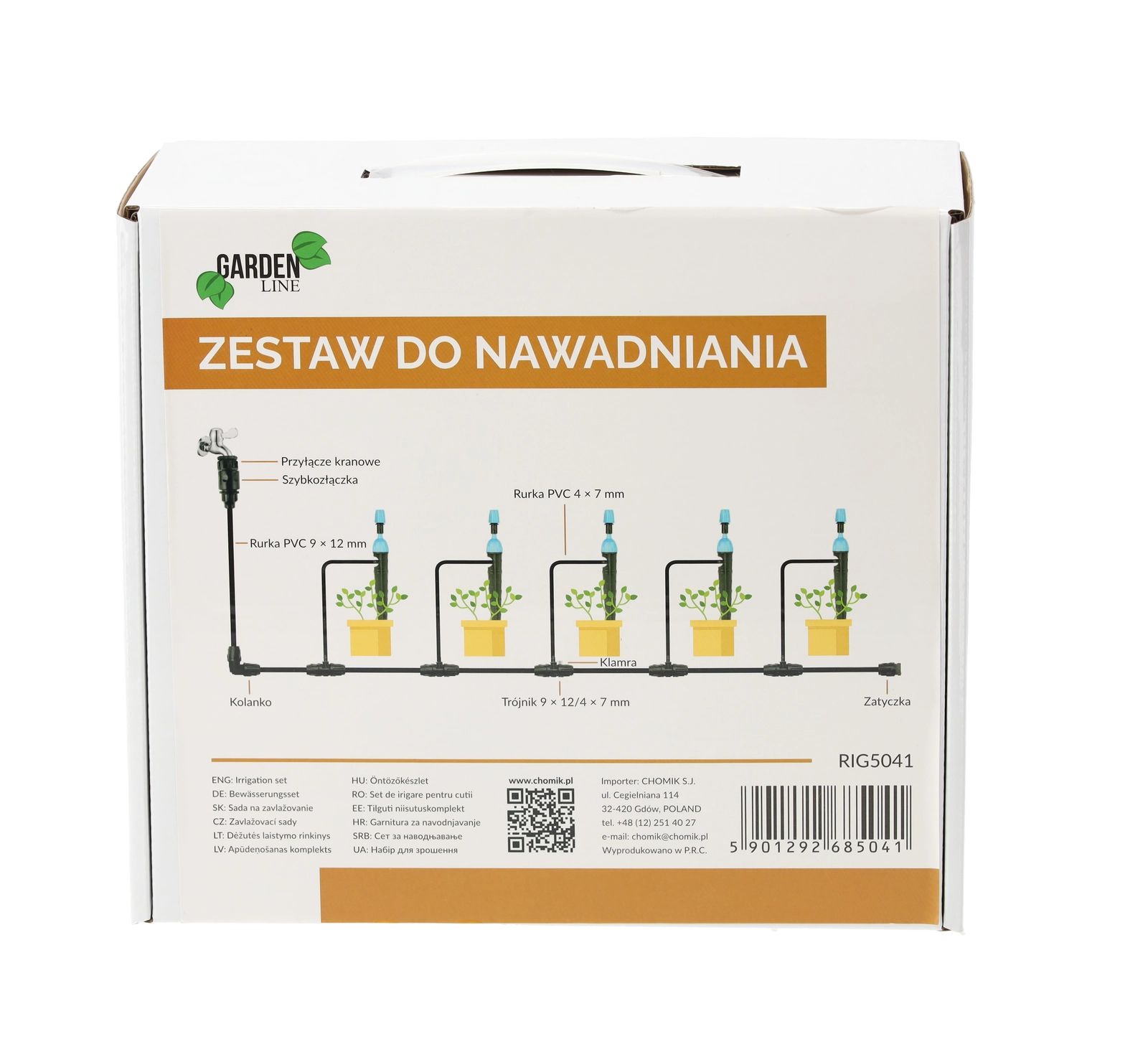 Ez az univerzális csepegtető öntözőkészlet speciális szerszámok nélkül, gyors telepítésre készült. Mindent tartalmaz: csapcsatlakozót, gyorscsatlakozót, kétféle csőmétert (4×7 mm és 9×12 mm), elosztókat, könyököket, záródugókat, 10 permetezőt/csepegtetőt, rögzítő klipszeket és tömítő teflonszalagot. Ennek köszönhetően könnyen kialakítható egy hatékony öntözőhálózat ágyásokhoz, magaságyásokhoz és balkonládákhoz.