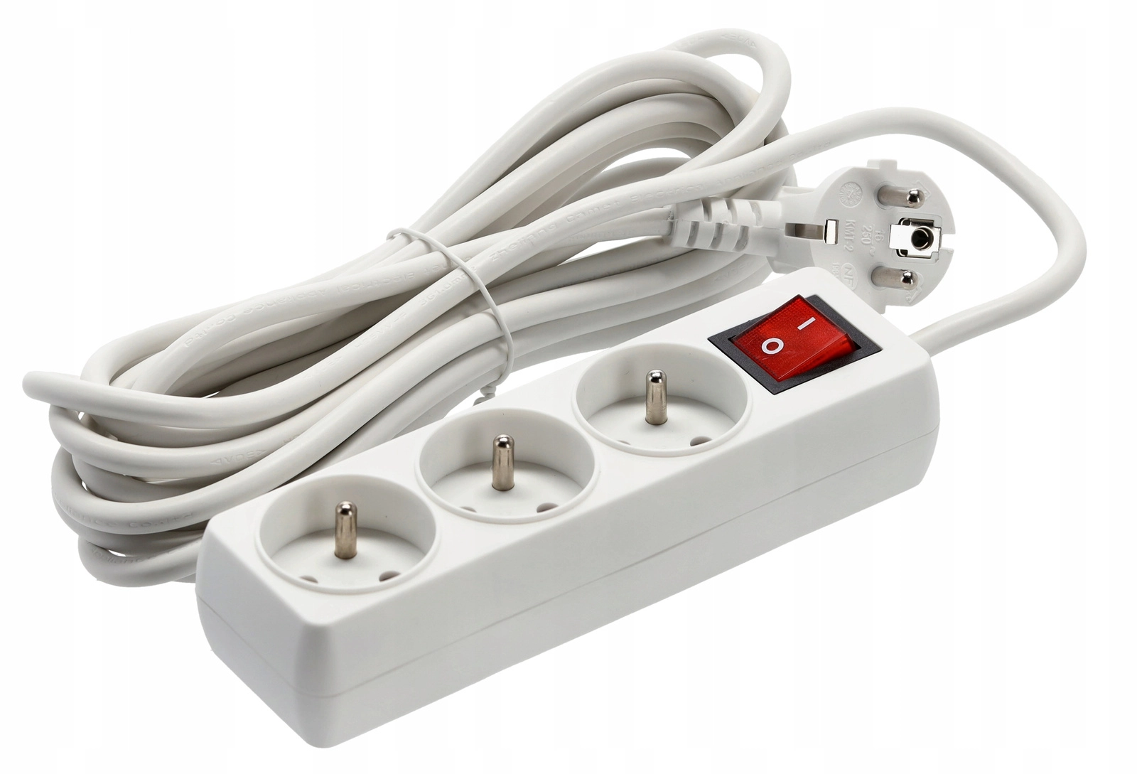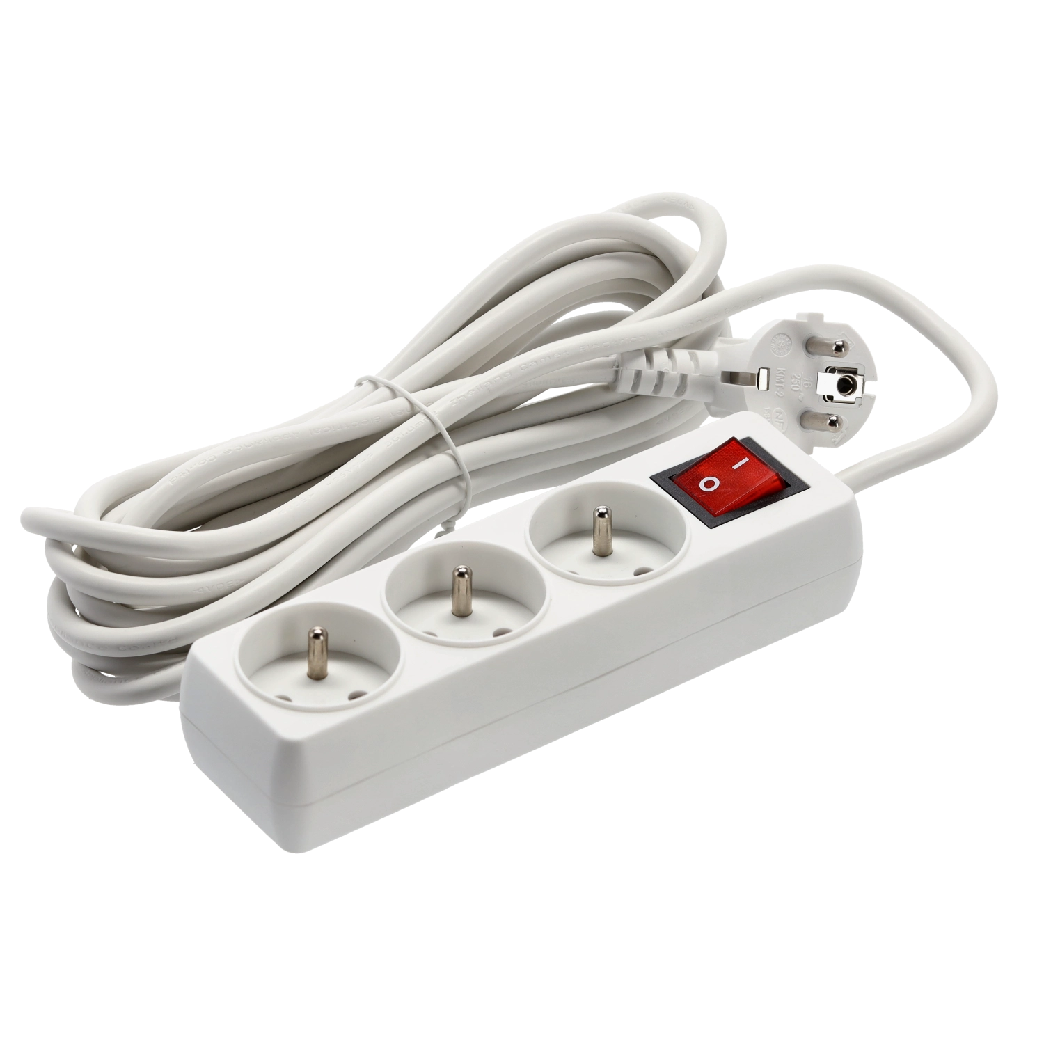 Hosszabbító túlfeszültség-védett elosztó kapcsolóval, 3 aljzat, 5 m, fehér
