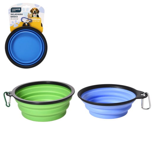 Összecsukható tál kutyáknak és macskáknak 1000 ml karabinerrel