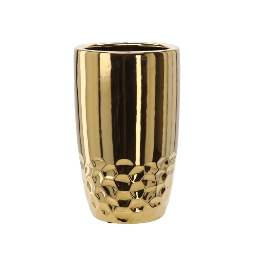 Ez a modern virágcserép arany kivitelben tökéletesen kiemeli a zöld növényeket, és stílusos fókuszponttá válik a nappaliban, előtérben vagy irodában. A tartós kerámia szerkezet jobb stabilitást ad a magasabb növényeknek, és egyben könnyen tisztítható.