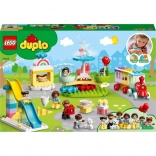 A készlet hét DUPLO figurát tartalmaz, beleértve két nőt, egy férfit és négy gyereket. Az olyan színes elemek, mint a változó színű fények, valósághű légkört kölcsönöznek az igazi szórakoztató parknak.