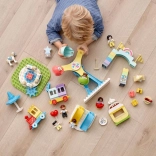 Lépjen be a végtelen szórakozás világába, és fedezze fel a különféle attrakciókat, amelyeket a LEGO DUPLO szórakoztató park kínál. A csúszdáktól a körhintán és a kisvasútig mindenki megtalálja a saját játékterületét.