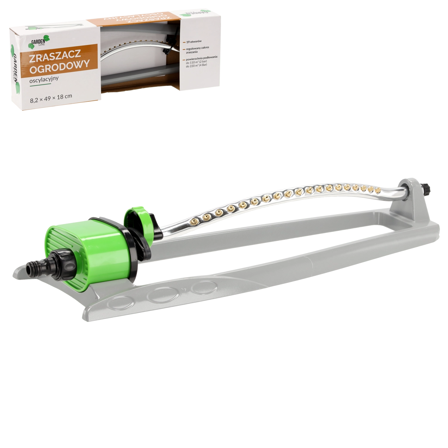 Széles munkaszélessége és egyenletes, oszcilláló mozgása akár 220 m² felületet is hatékonyan lefed (4 bar nyomáson), így időt és vizet takarít meg. A kerti tömlőhöz való egyszerű csatlakoztatás és a stabil talp kényelmes használatot nyújt.