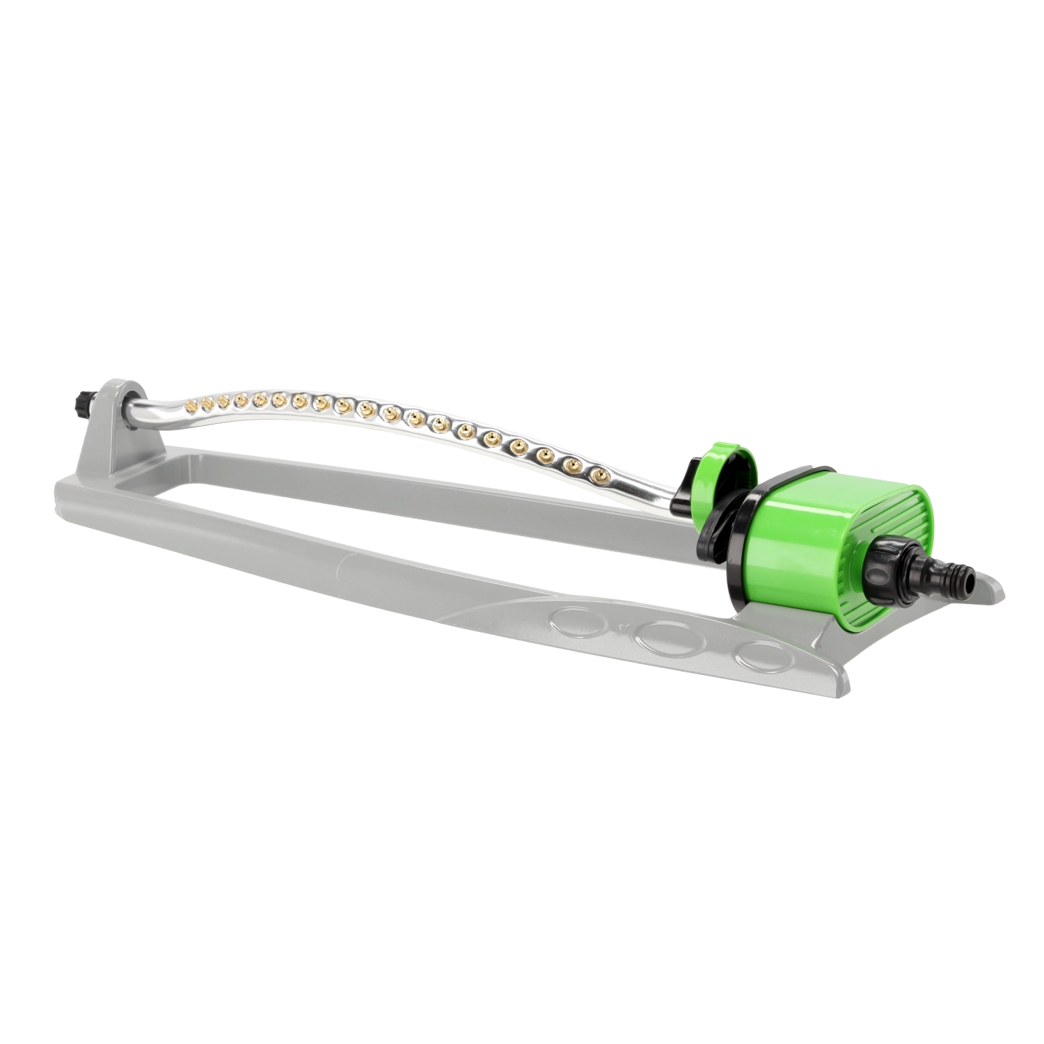 Az oszcilláló öntöző megbízható segítőtárs a gyep, ágyások és díszfelületek rendszeres és kíméletes öntözéséhez. A alumínium és ABS robusztus felépítés hosszú élettartamot garantál, míg a 19 sárgaréz fúvóka finom, egyenletes esőztetést biztosít pocsolyák kialakulása nélkül.