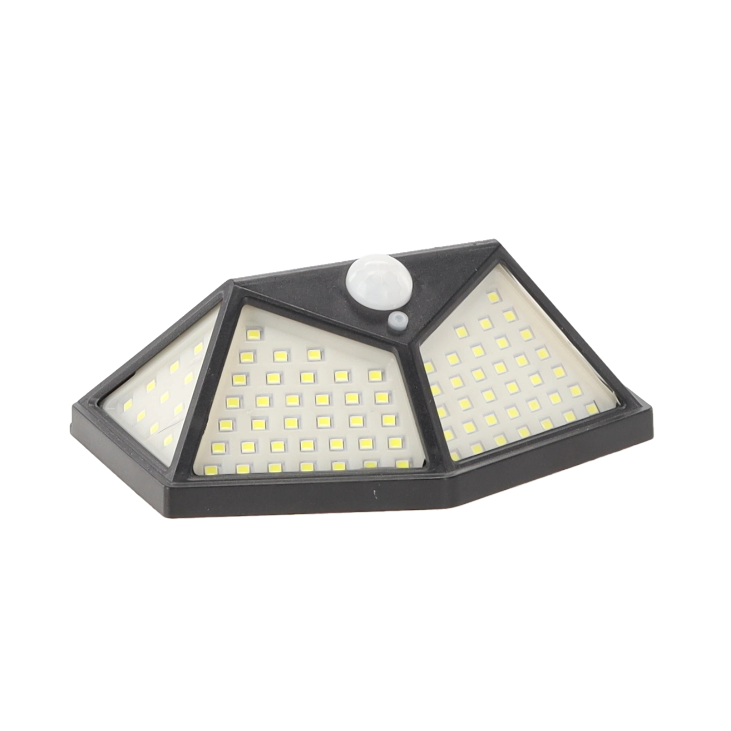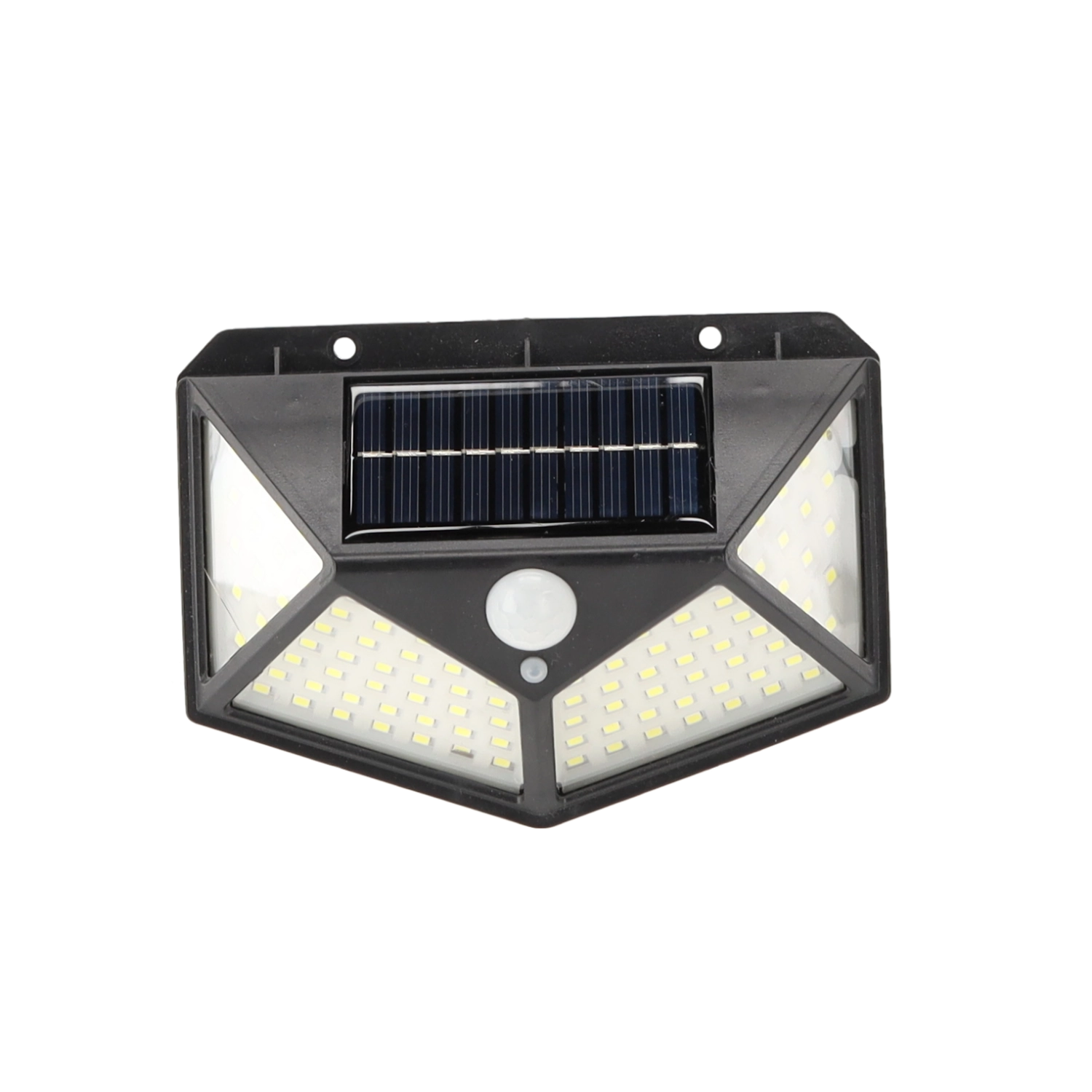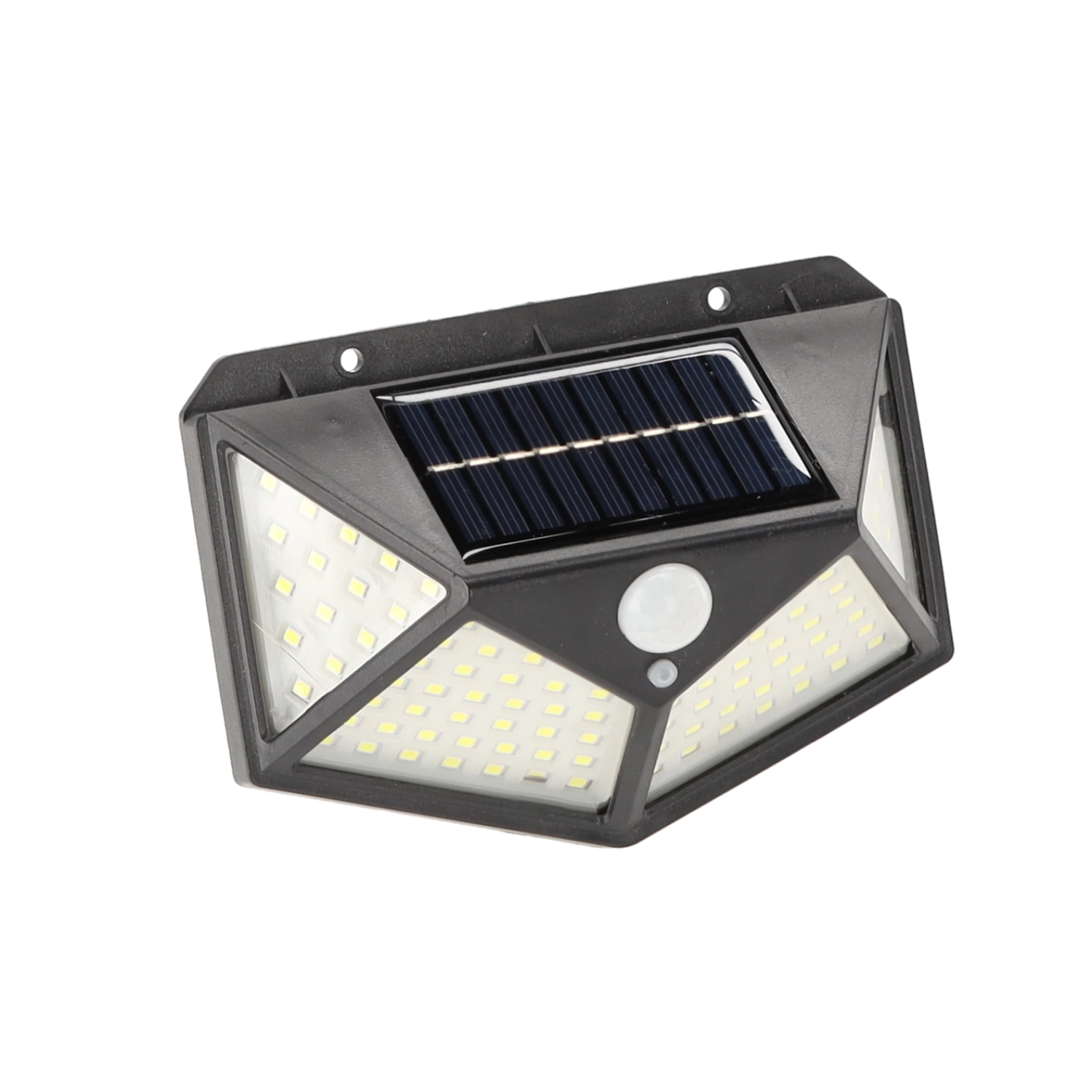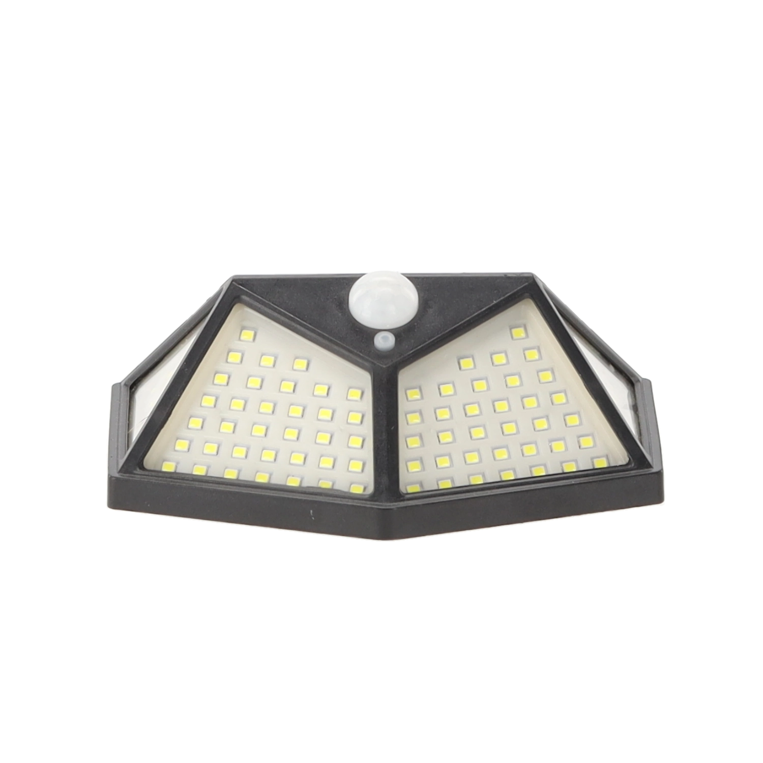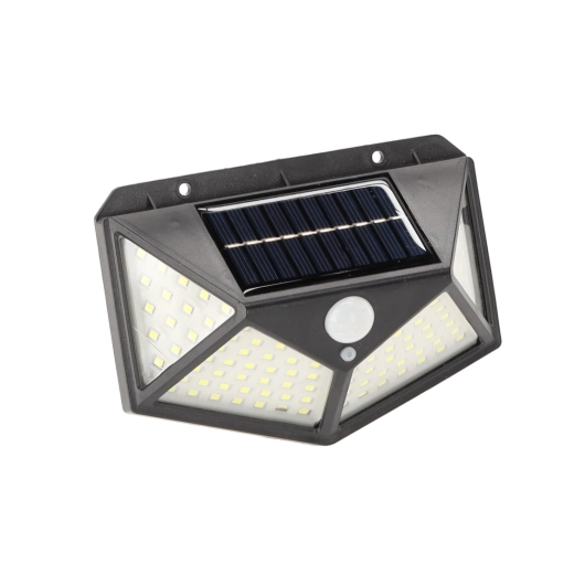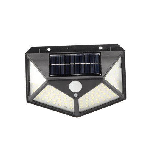 Kompakt napelemes fali lámpa 100 LED-del és PIR mozgásérzékelővel, amely erős, hideg fehér fényt biztosít ott, ahol szükség van rá. A napelemes tápellátásnak és a mozgás észlelésekor történő automatikus bekapcsolásnak köszönhetően ideális bejáratokhoz, járdákhoz és teraszokhoz, és energiát takarít meg kábelezés nélkül.