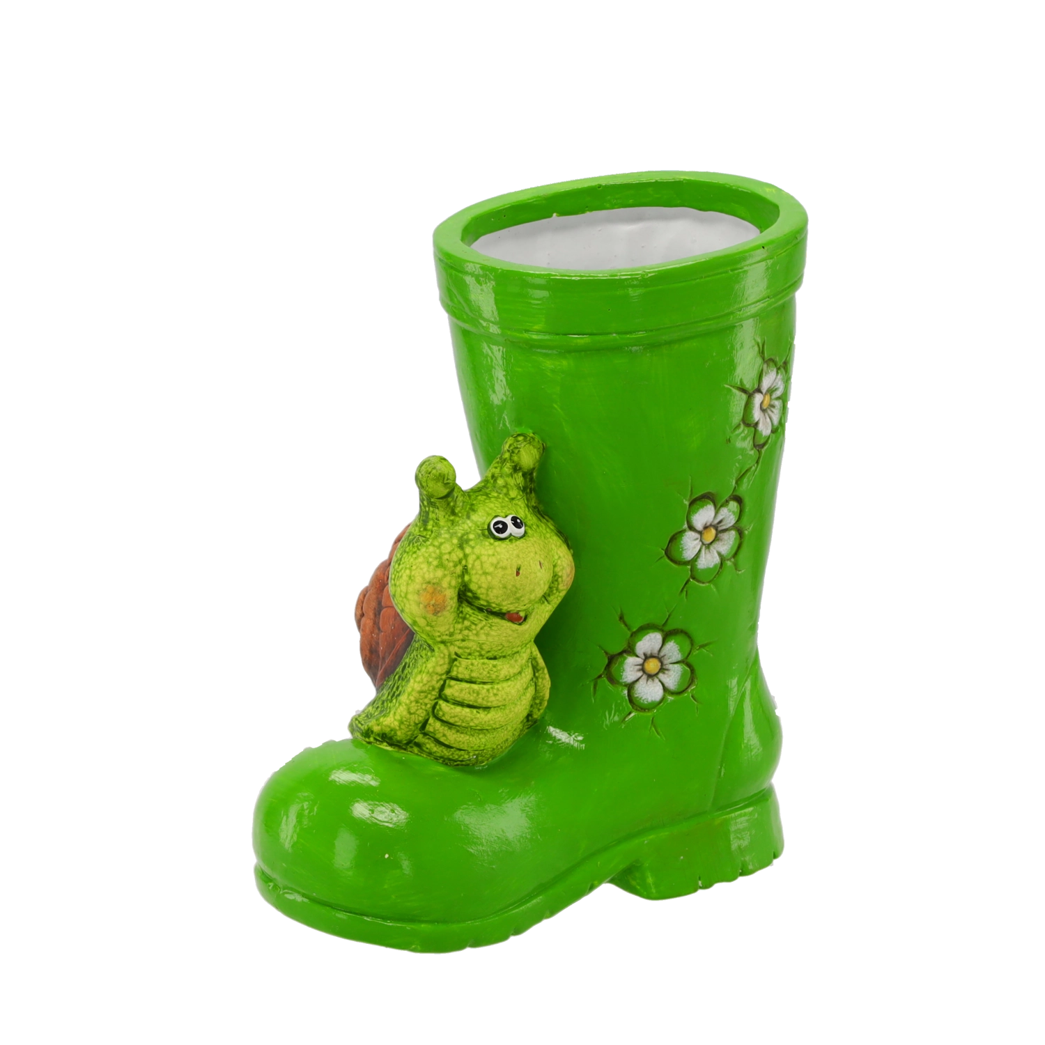 A bájos kerti figura, gumicsizma csigával varázst kölcsönöz minden ágyásnak, terasznak és erkélynek. Időjárásálló anyagból készült, így hosszú távon megőrzi színeit és formáját. Élethű részletei és a praktikus virágtartóként való használhatóság teszik kertje feltűnő és funkcionális kiegészítőjévé.