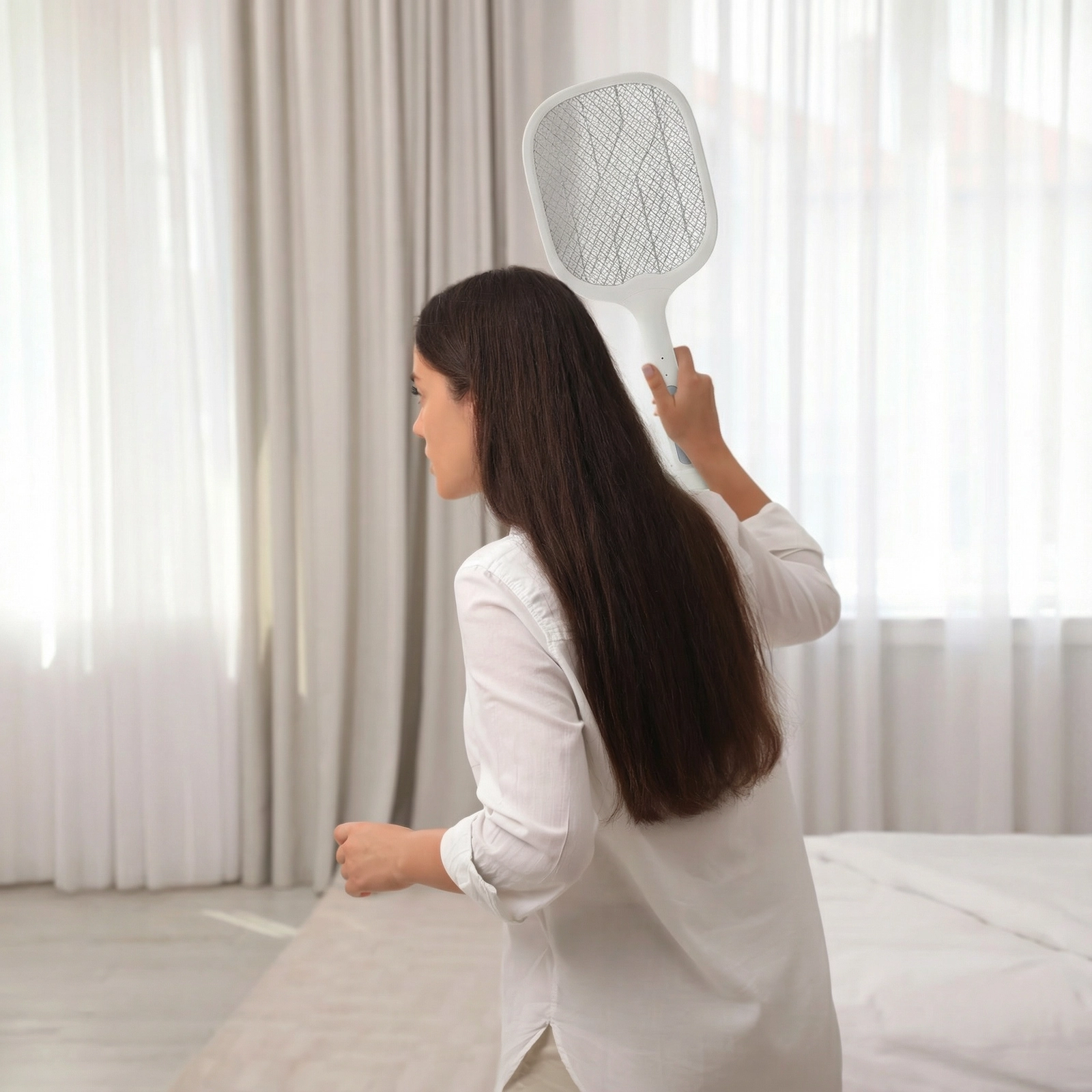 A praktikus és biztonságos 2 az 1-ben rovarcsapda kézi ütőként és álló rovarlámpaként is használható. A 6 UV LED (360–400 nm) hatékonyan vonzza a szúnyogokat és a legyeket, amelyeket ezt követően a ~3000 V-os nagyfeszültségű háló semlegesít. Könnyű és strapabíró megoldás otthonra, nyaralóba és teraszra, USB‑C töltéssel, akár 7 óra üzemidővel, vegyszerek használata nélkül.