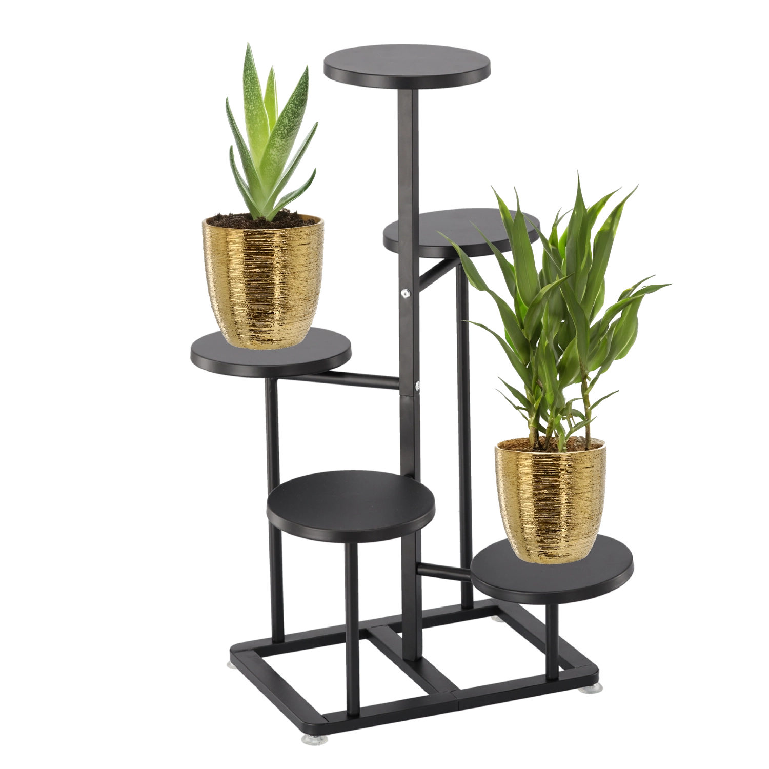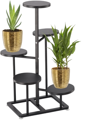 Elegáns, 5 szintes, tartós fémből készült fekete virágtartó, amely stílust és rendszert visz otthonába vagy teraszára. Többszintes kialakítása helytakarékos, és biztosítja, hogy minden növény elegendő fényt kapjon. Stabil kivitelének és 47 × 47 × 80 cm-es méreteinek köszönhetően könnyedén kiállíthat akár öt, különböző méretű kaspót modern, minimalista dizájnban.