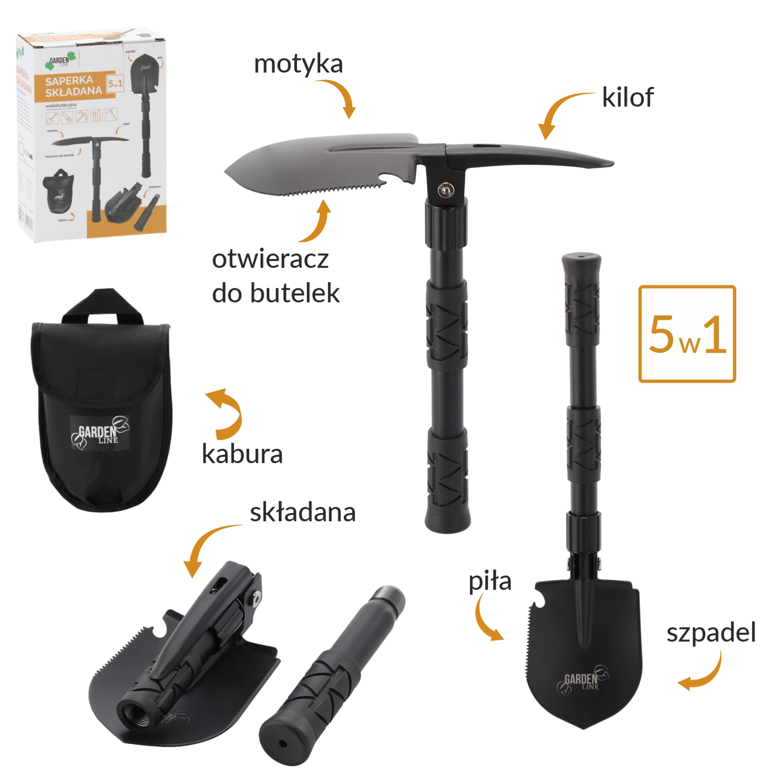 Fedezze fel az univerzális szerszámot minden túrához. Ez a multifunkciós, összecsukható ásó akár öt funkciót egyesít – a gyors ásástól és tereprendezéstől kezdve az ágak vágásán át a kemény talajban végzett munkáig. A masszív mangánacél penge és az acél nyél hosszú élettartamot biztosít még igényes körülmények között is.