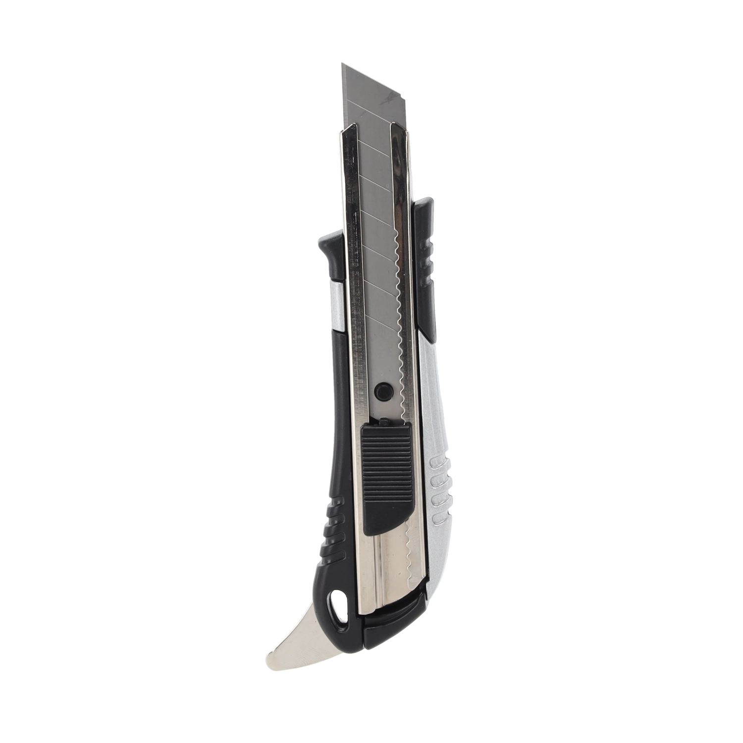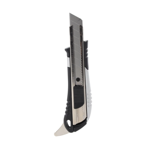 M megbízható kést keres mindennapi karton-, fólia- vagy szőnyegvágáshoz? Ez a 18 mm szélességű alumínium tördelő kés az ellenálló felépítést biztonsági funkciókkal ötvözi a kényelmes és pontos vágás érdekében. Az automatikus biztosíték szilárdan a helyén tartja a pengét, míg a fekete ABS markolat biztos és kényelmes fogást nyújt hosszabb munkavégzés során is.
