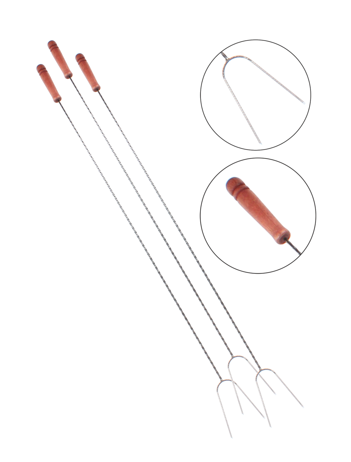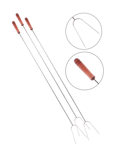 A tűzrakó villák nélkülözhetetlen kiegészítők mindazok számára, akik szeretnek kolbászt, zöldséget vagy pillecukrot sütni nyílt láng felett. A hosszú kialakítás maximális biztonságot és kényelmet nyújt az ételek kezelésénél.