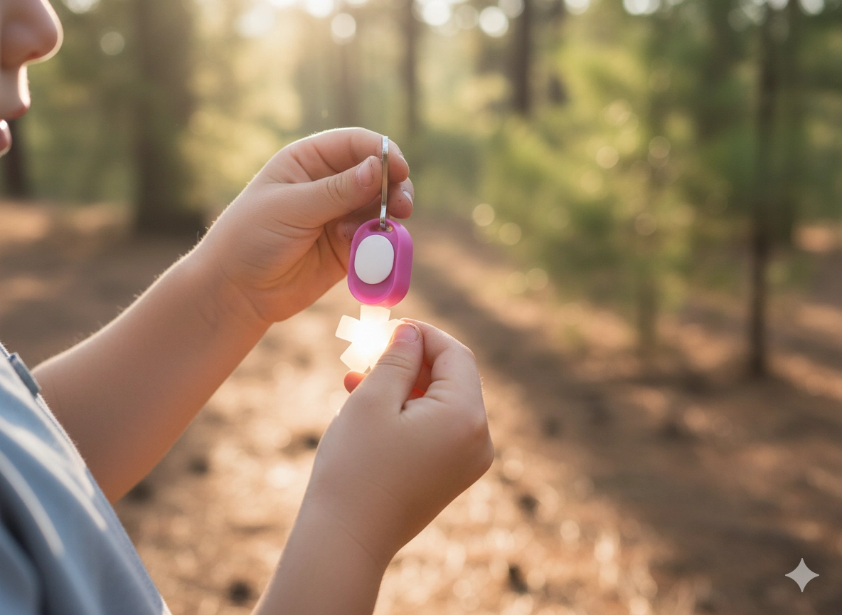 Kis mérete és a gyűrű/csipesz révén könnyen rögzíthető a hátizsák vagy kabát cipzárjára, illetve a kulcscsomóra. Ideális utazáshoz, iskolába és munkába.
