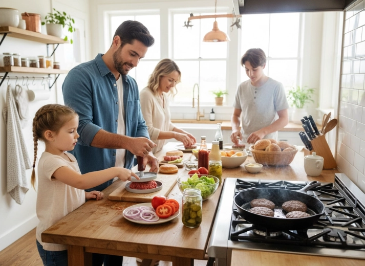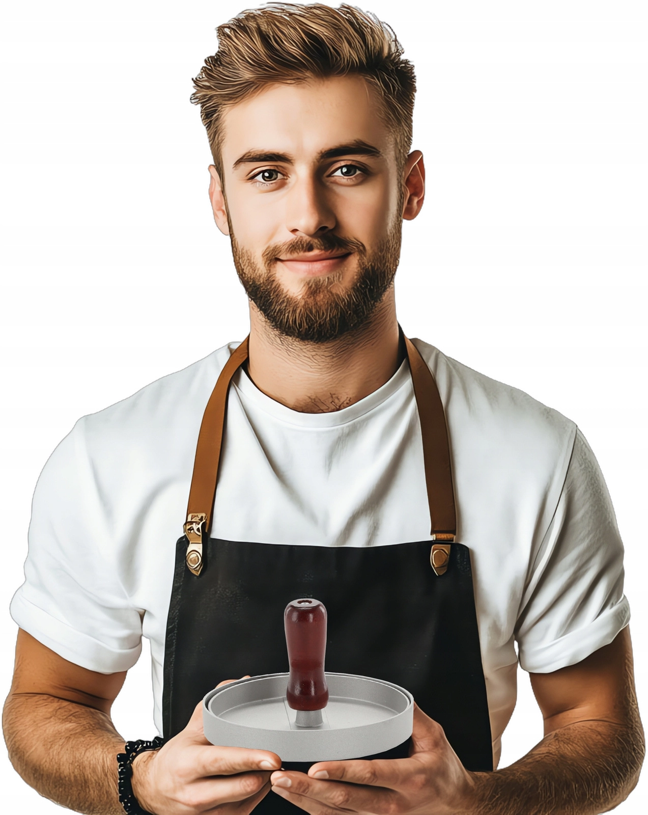 A formázó alap azonos alakra és vastagságra préseli a húst, így a burger egyenletesen sül át, és megtartja a formáját sütéskor és grillezéskor is.