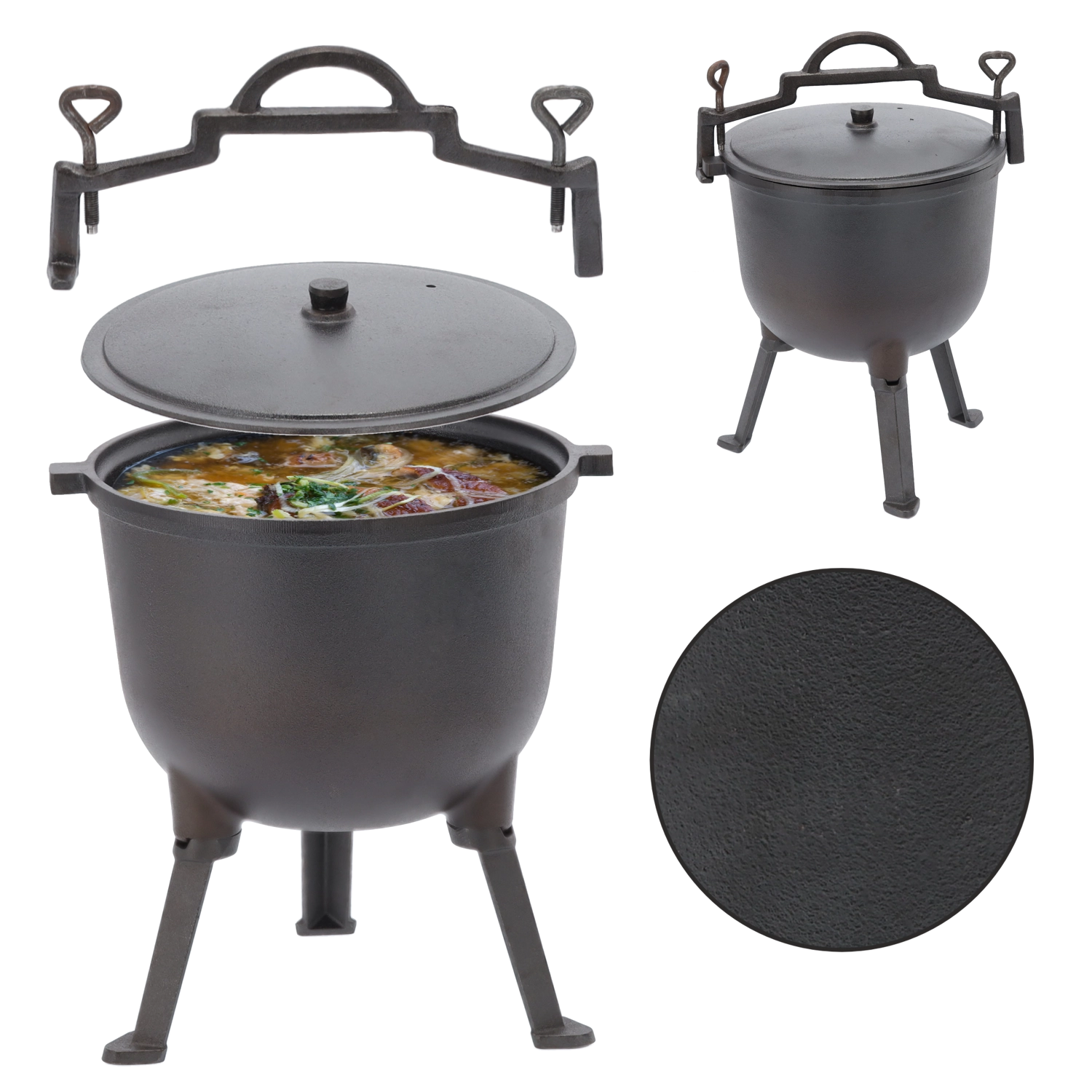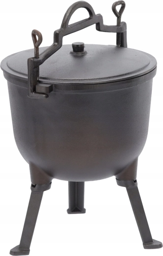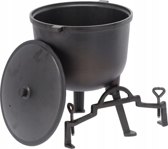 Ez a nagy űrtartalmú öntöttvas bogrács tökéletes gulyáshoz, levesekhez és lassú pároláshoz a tűz fölött. A masszív szerkezet bírja a magas hőmérsékletet és a változó kültéri körülményeket, míg a fedő bent tartja a nedvességet és az ízeket. A fogantyúval a bogrács könnyen szállítható és a tűz fölé akasztható.