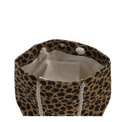 Stílusos strandtáska, amely ötvözi a könnyű súlyt, a nagy űrtartalmat és a strapabíró kötélpántokat. A 46 × 33 cm-es méretnek köszönhetően kényelmesen elfér benne egy törölköző, naptej, kulacs és minden egyéb szükséglet. A trendi természetes motívumok – állatminták és trópusi minták – feldobják nyári megjelenésedet.