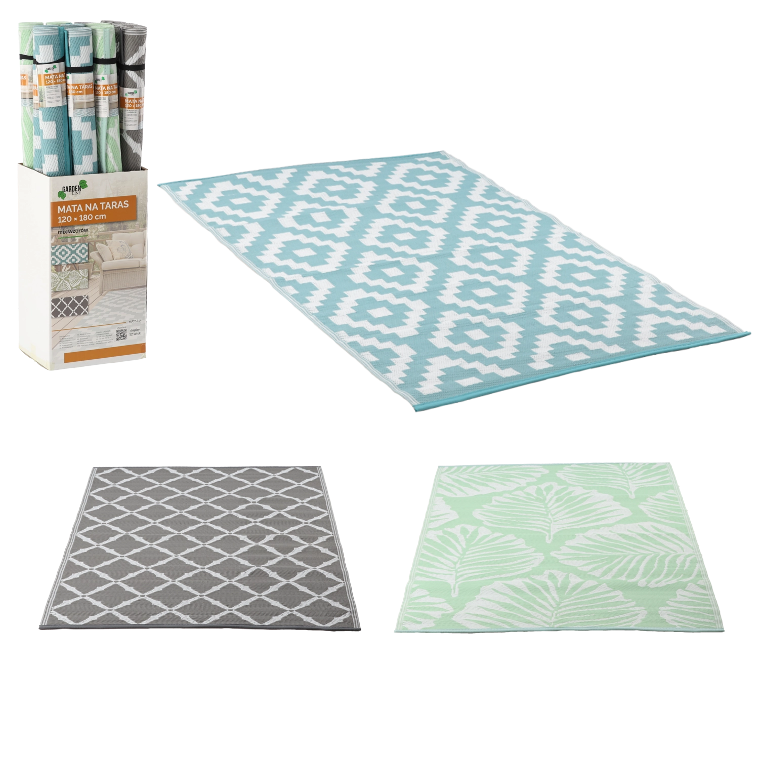 Stílusos, 120 × 180 cm-es kültéri szőnyeg, amely egy szempillantás alatt megváltoztatja a teraszt vagy az erkélyt. Tartós polipropilénből készül, ellenáll a nedvességnek és az időjárásnak, valamint könnyen tisztítható. A modern geometrikus és leveles mintáknak köszönhetően elegánsan elkülöníti az ülő-, étkező- vagy játszózónákat, és friss megjelenést ad a kültérnek.