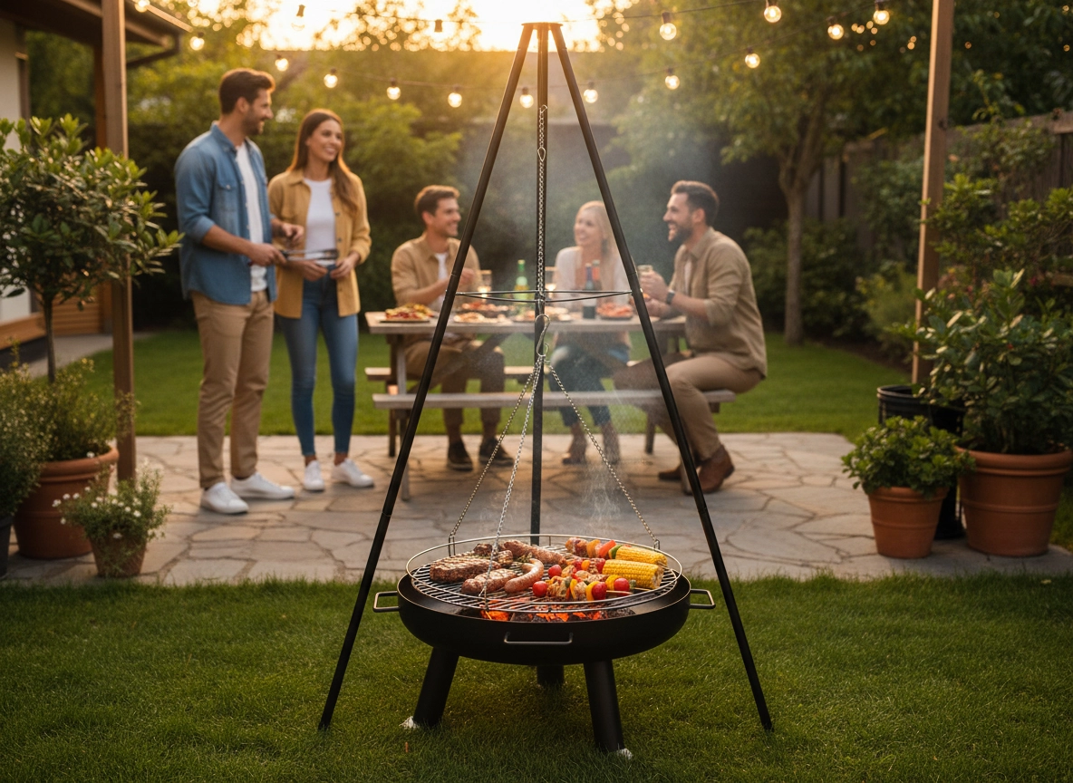 A háromlábú, masszív szerkezet megbízhatóan a helyén tartja a grillt a kertben, a teraszon vagy akár kempingezés közben.
