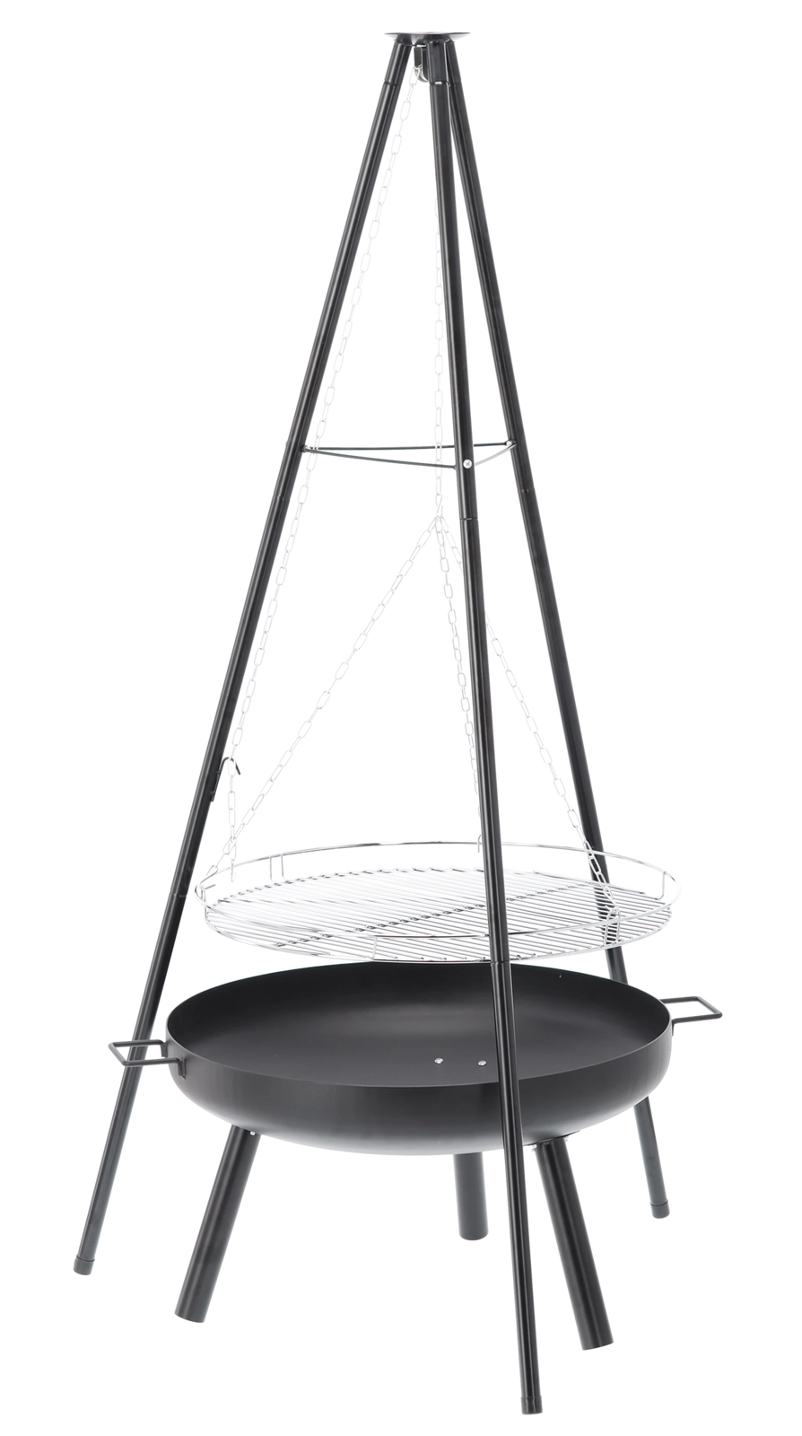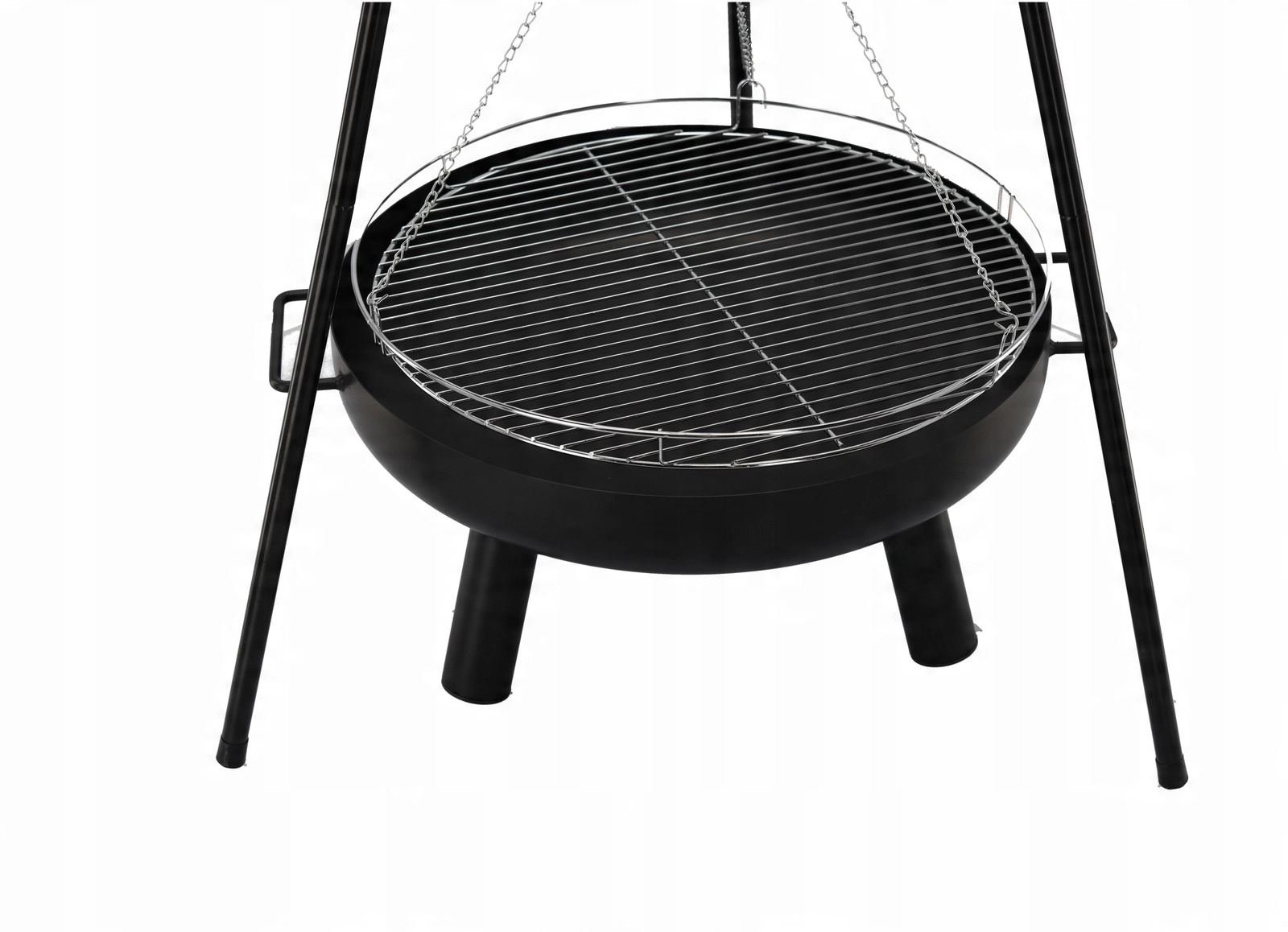 A stabil háromláb biztonságos grillezést nyújt kertben, teraszon és kempingben is. A nagy grillezőfelület ideális családi és baráti összejövetelekhez, míg a tál praktikus fogantyúi megkönnyítik a kezelést és az áthelyezést.