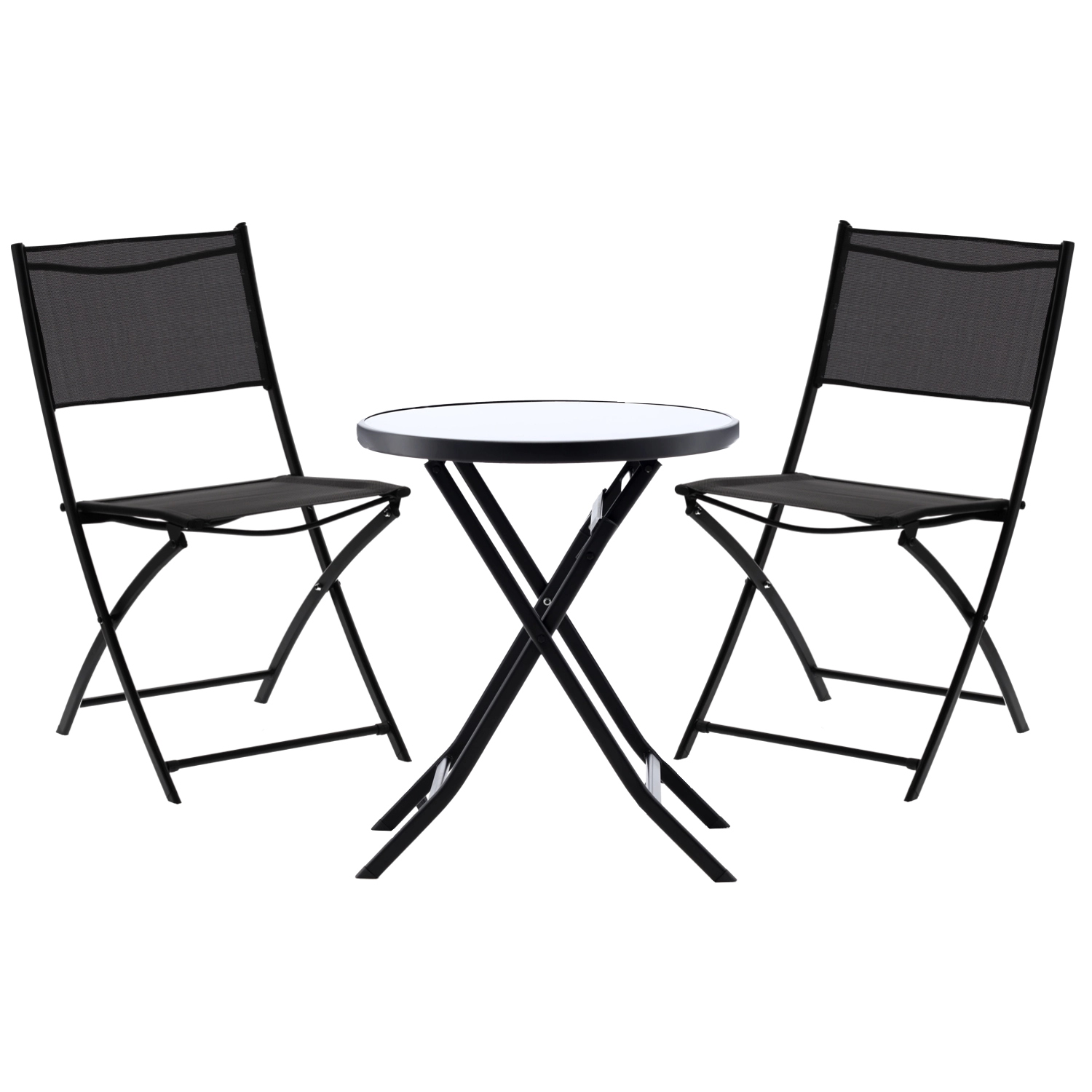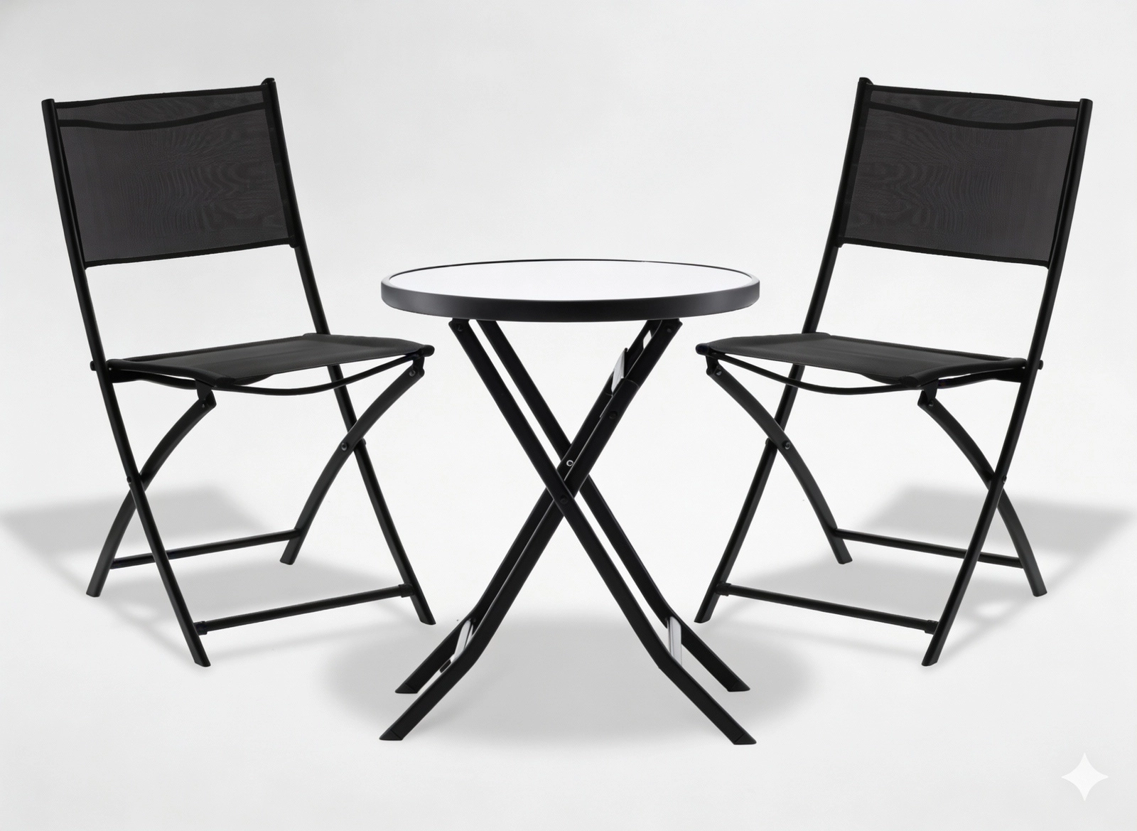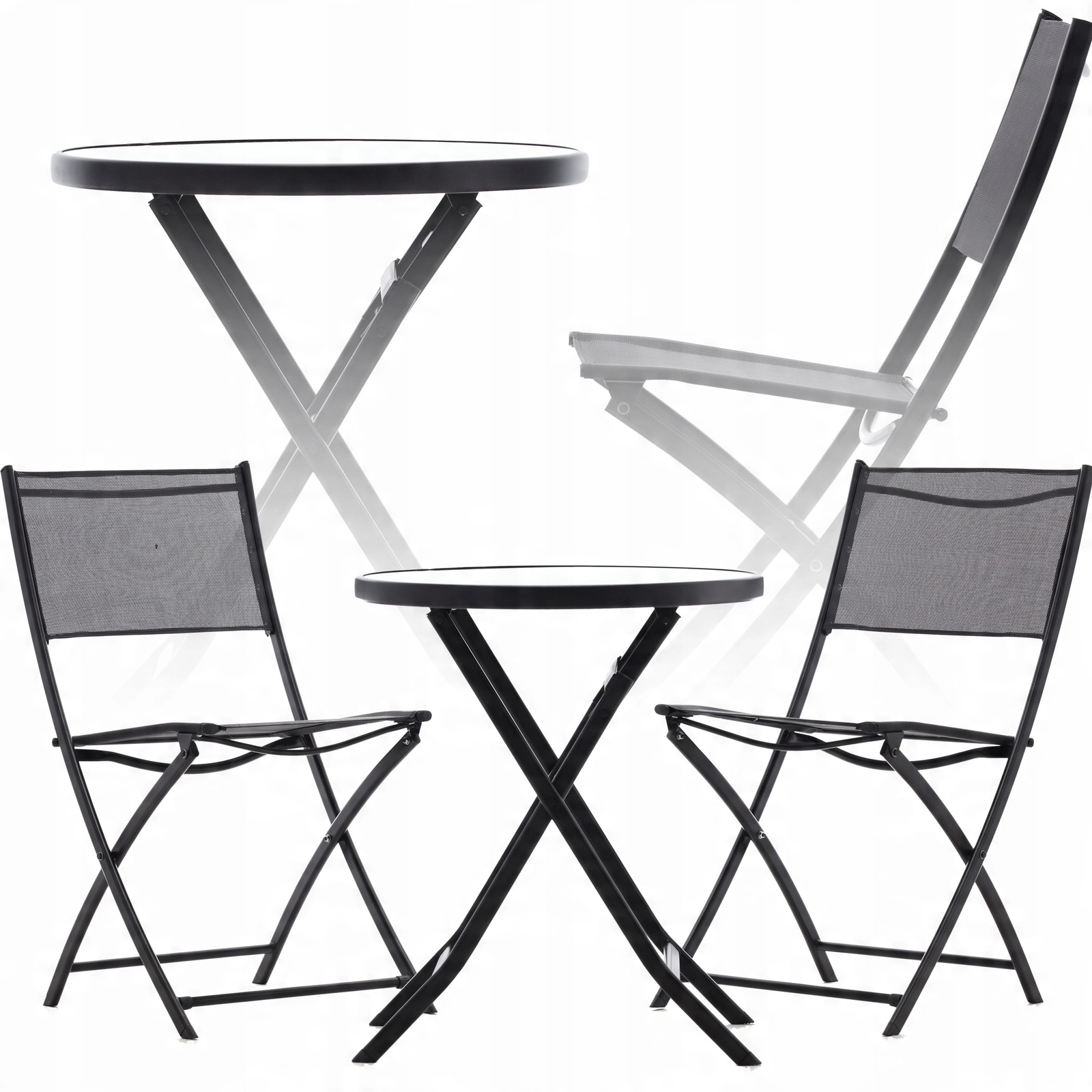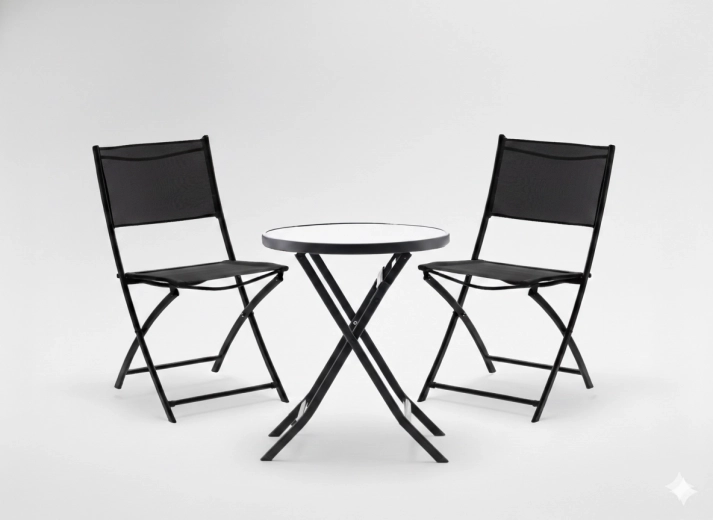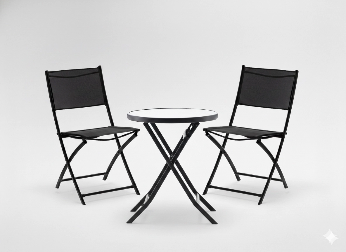 Élvezze a kávét az erkélyen ezzel a kompakt bistro szettel, amely ötvözi a modern dizájnt és a funkcionalitást. A porszórt bevonatú stabil acélváz ellenáll az időjárásnak, míg az 5 mm vastag edzett üveg asztallap elegáns és könnyen tisztítható. A teljes szett egyszerűen összecsukható és elrakható, amikor helyre van szükség.
