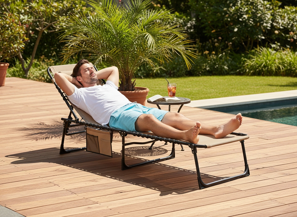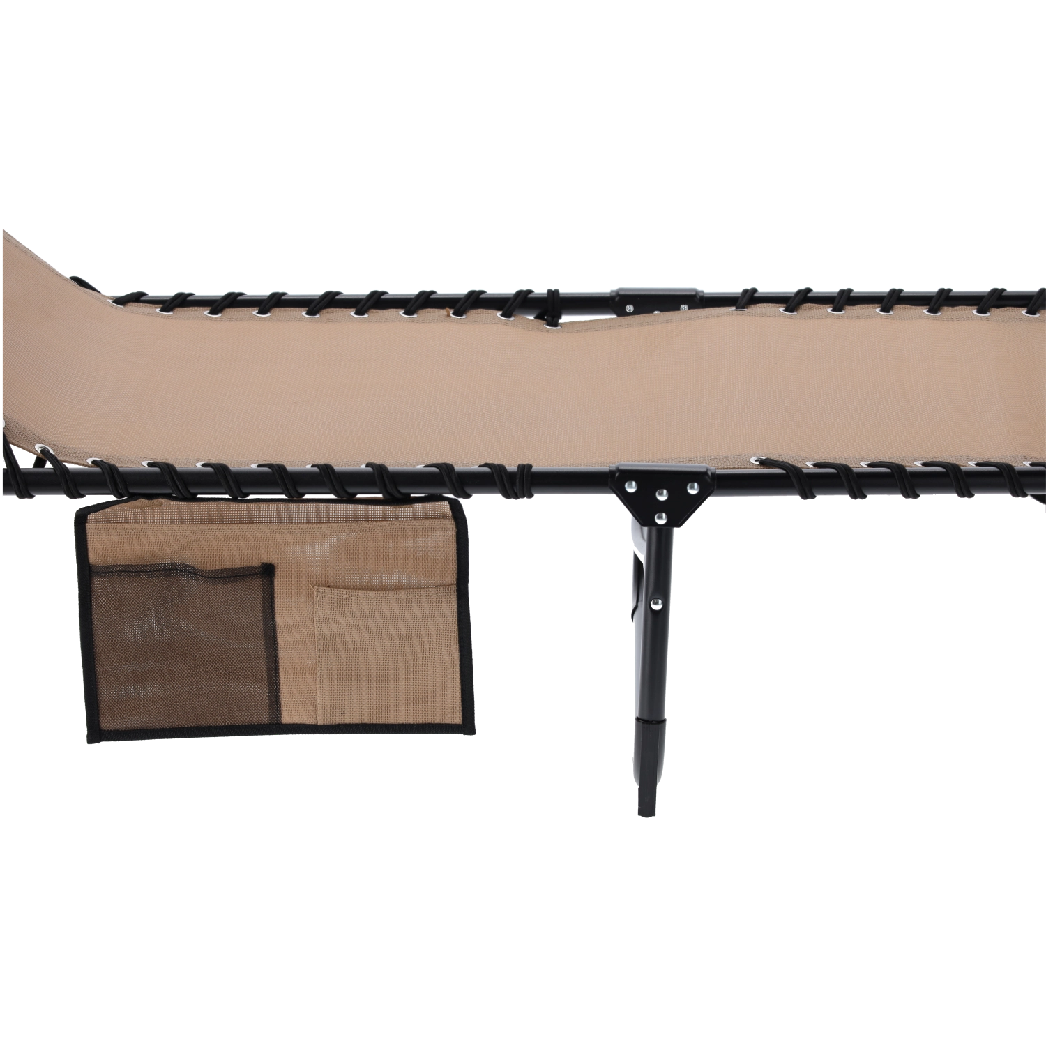 A stabil fém lábaknak és a tartós szövetnek köszönhetően a nyugágy gyakori kültéri használatra is készen áll. Az oldalsó zseb kézközelben tartja a telefont, könyvet vagy szemüveget, az összecsukható váz pedig megkönnyíti a hordozást és a tárolást.