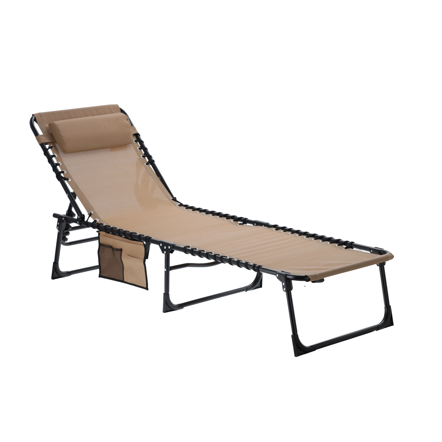 Élvezze a kényelmet bárhol a szabadban ezzel a sokoldalú nyugággyal, amely szükség esetén polifunkciós tábori ágyként is megállja a helyét. Összecsukható kialakítás, állítható háttámla párnával, oldalsó zseb apróságoknak és strapabíró textil feszítve a masszív acél vázzal – ideális medence mellé, teraszra, kempingezéshez és a strandra.