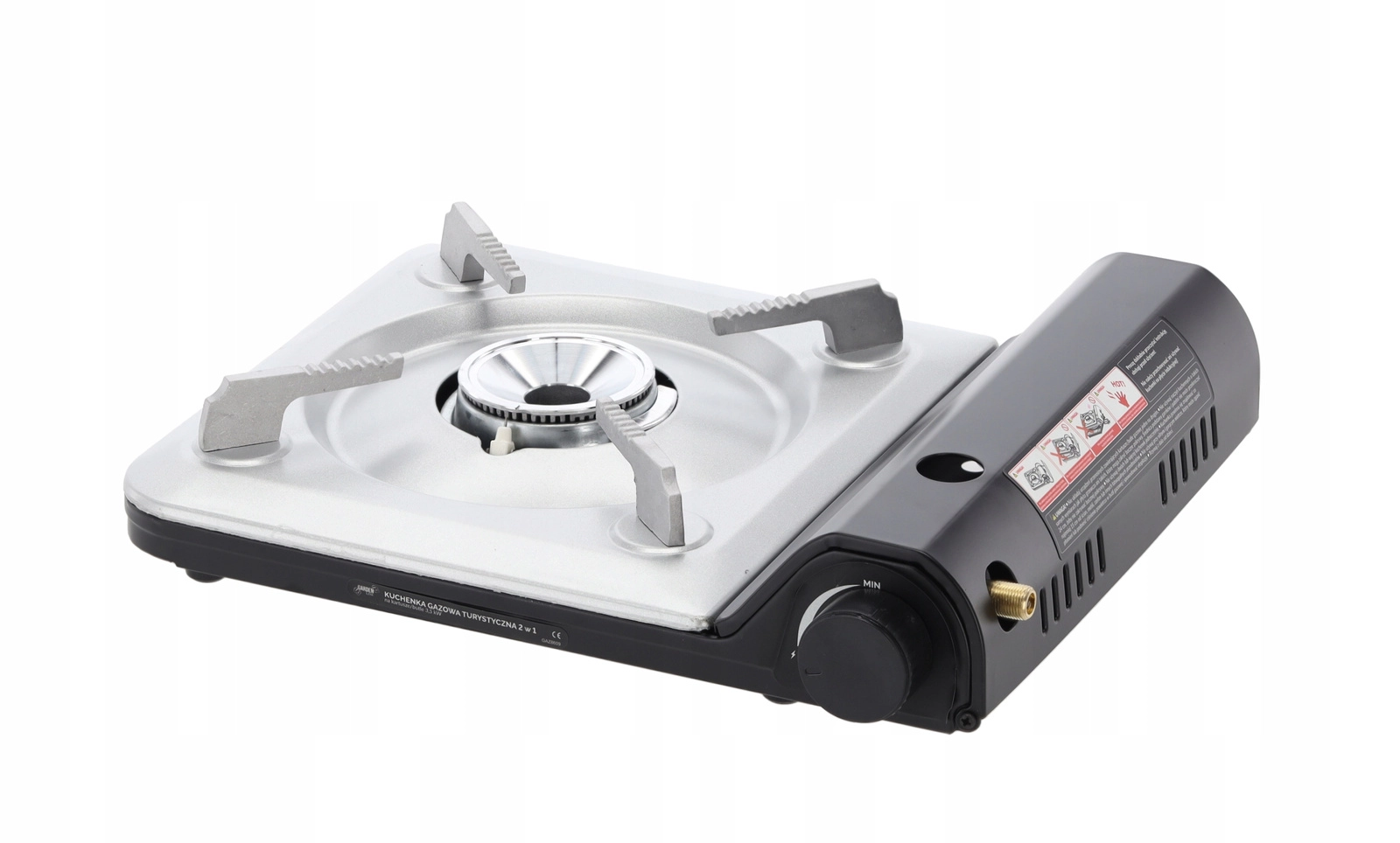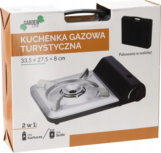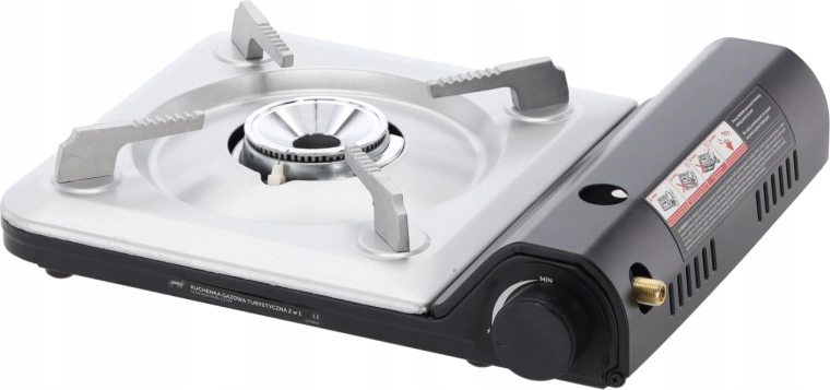 Univerzális, 2 az 1-ben turisztikai gázfőző szabadtéri és otthoni főzéshez. Működik gázpatronnal és PB-palackkal, 3,5 kW teljesítményt kínál, biztonságos piezo gyújtással és praktikus szállító tok tartozékkal a könnyű hordozhatóságért.