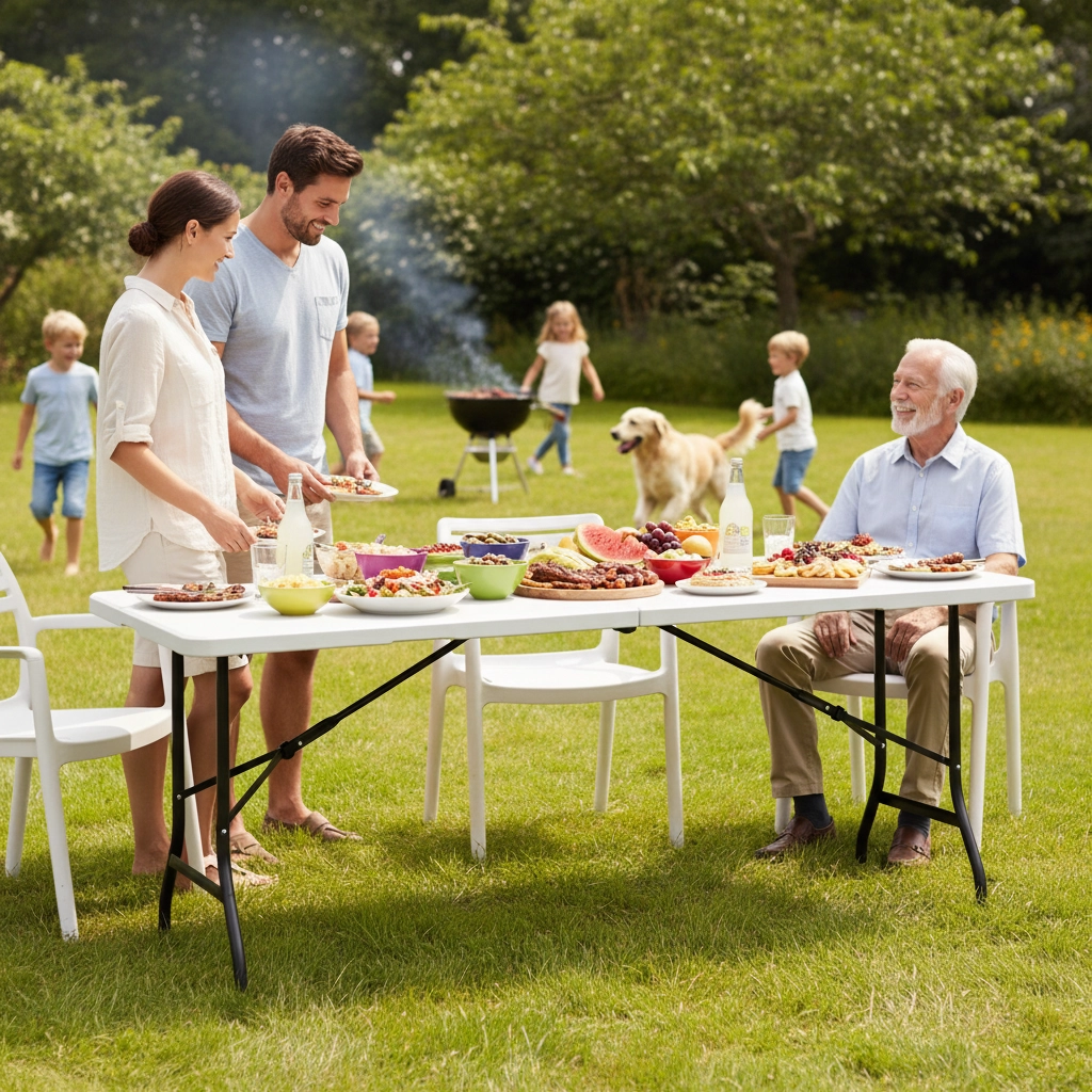 Megbízható asztalt keres rendezvényekre és a kertbe? Ez az összecsukható túra- és cateringasztal a kis tömeget, a tartósságot és a gyors összecsukhatóságot ötvözi. Ideális családi ünnepekhez, kültéri esküvőkhöz, céges eseményekhez és kempingezéshez. A masszív fém lábak biztonsági reteszeléssel és csúszásgátló talpakkal különböző felületeken is stabilitást biztosítanak.