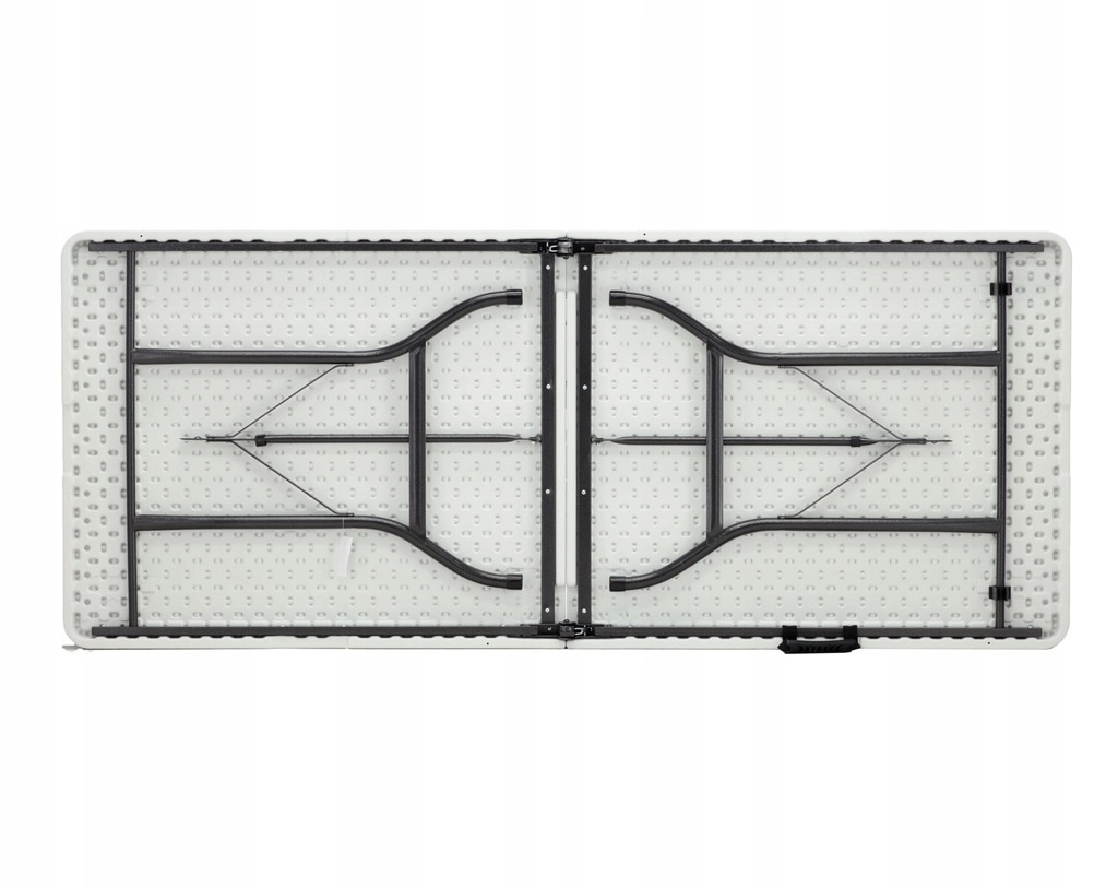 Praktikus és univerzális összecsukható asztal kerti bulikra, cateringre, kempingezéshez és vásárokra. Nagy munkafelületet kínál, kényelmesen leültet 6–8 főt, és a stabil, lábrögzítéssel ellátott szerkezetnek és a csúszásgátló végeknek köszönhetően biztonságos. A tartós HDPE lap vízálló és könnyen tisztítható, az asztal gyorsan összecsukható és egyszerűen hordozható.