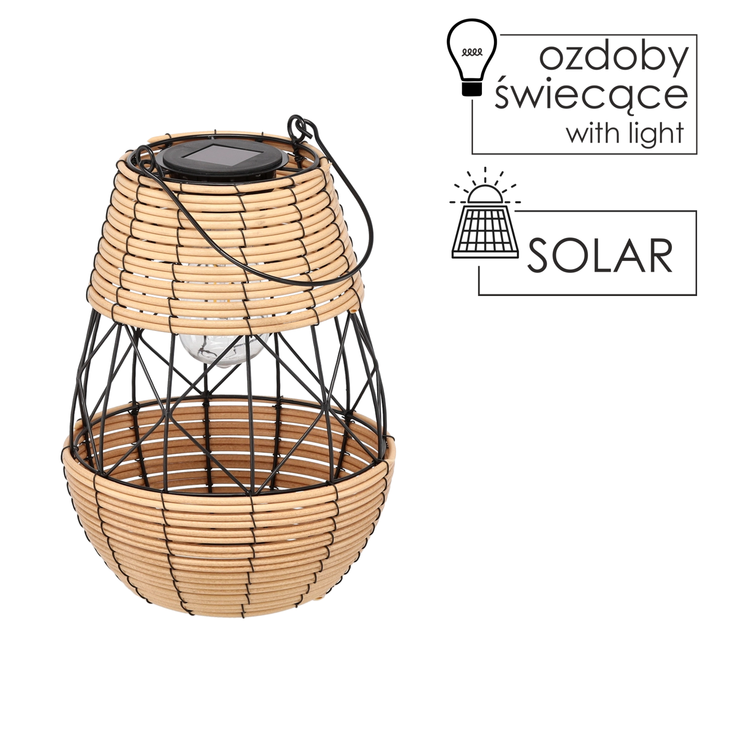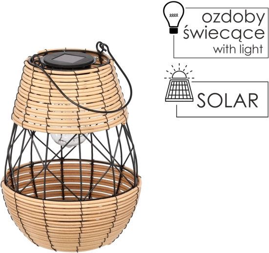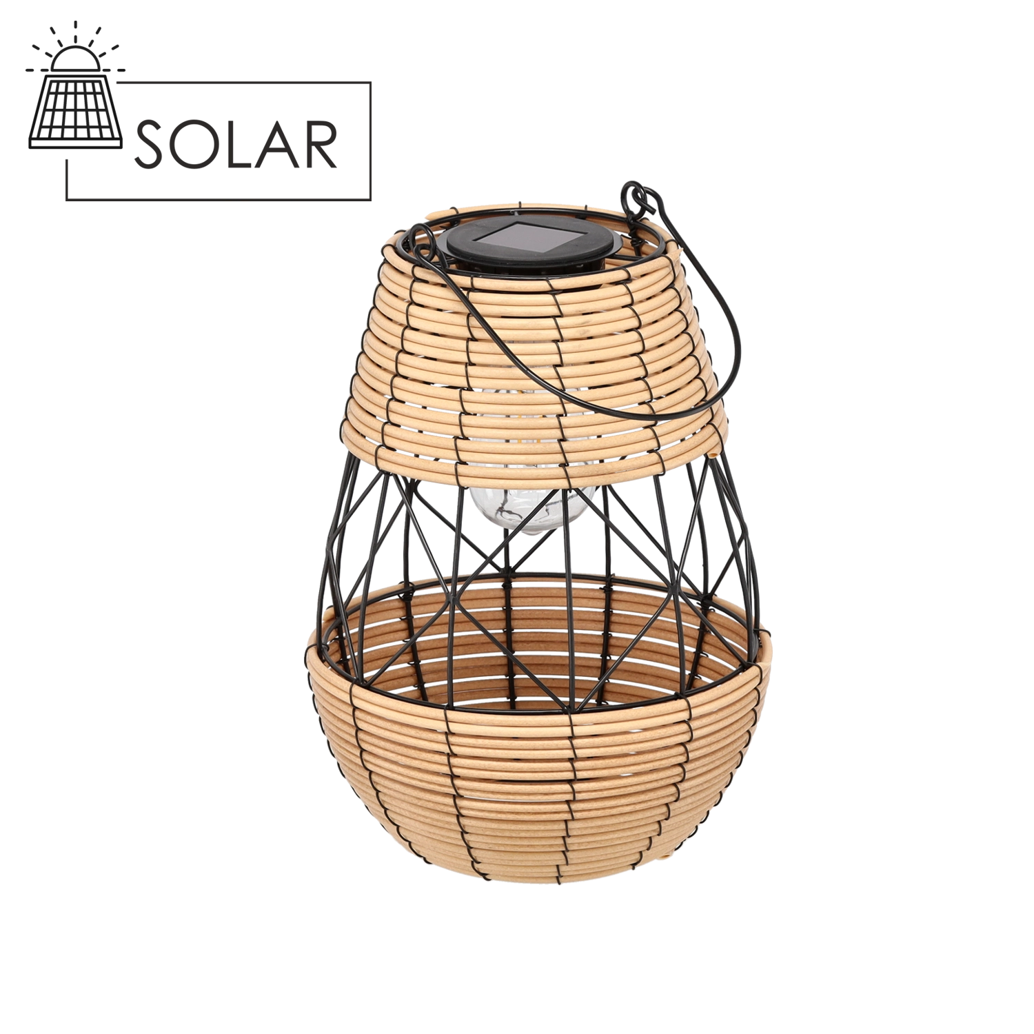 Varázslatos hangulatot teremthet a kertben, erkélyen vagy a teraszon. Ez a 32 cm magas napelemes lámpás rattan hatású megjelenéssel és fém vázzal nappal a napenergiával töltődik, sötétedéskor pedig automatikusan felkapcsol meleg, kellemes fénnyel. A fekete és bézs színkombináció nagyszerűen illik a modern és a természetes berendezéshez is.
