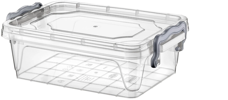 2 l-es műanyag tárolódoboz pattintós tetővel, átlátszó
