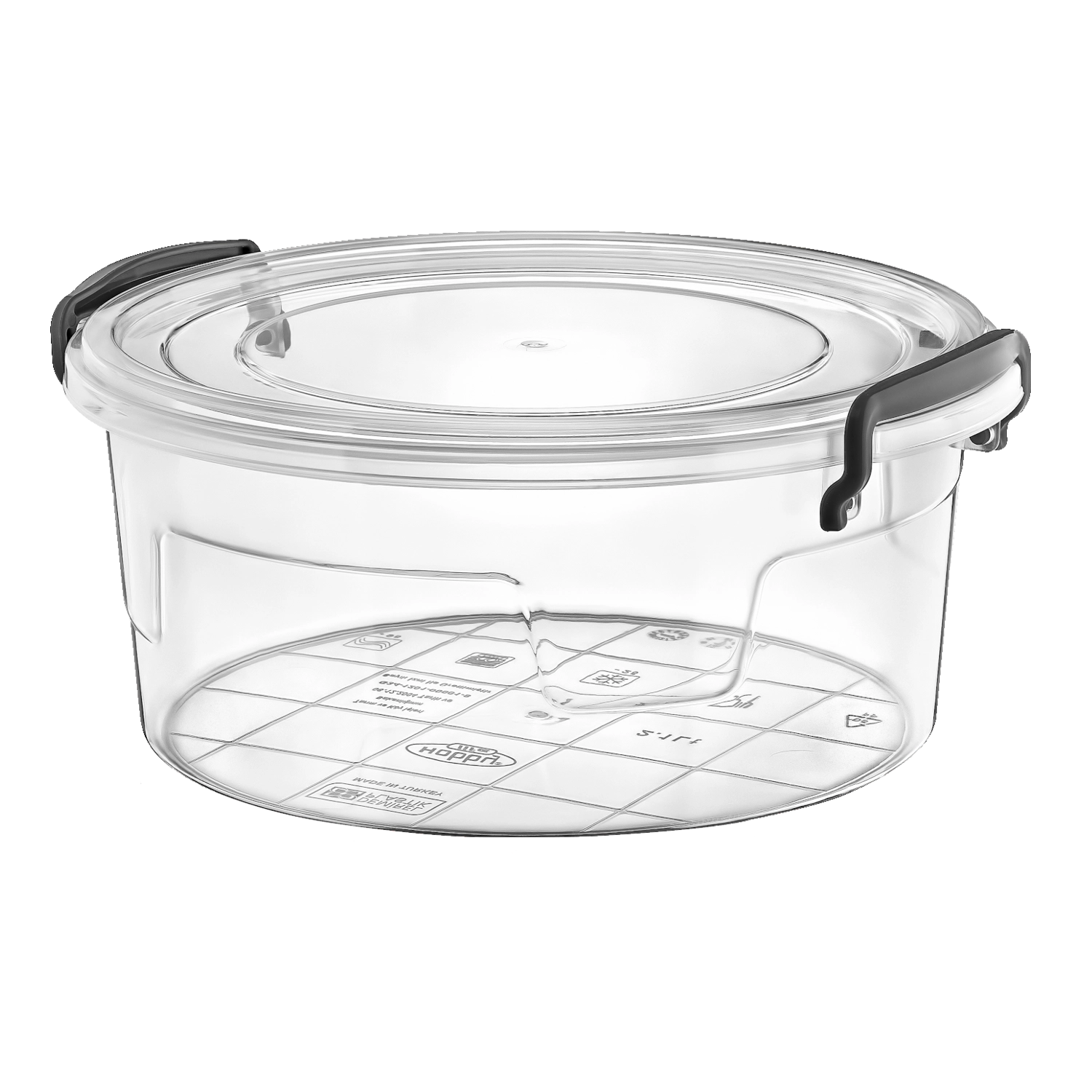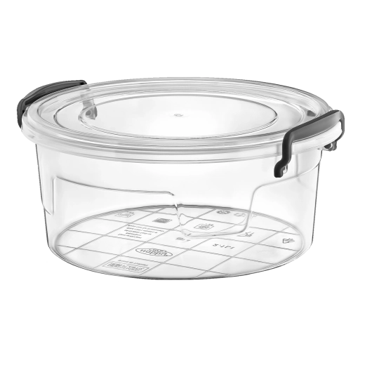 A praktikus, kerek műanyag Multi Box 2,1 l űrtartalommal ideális mindennapi élelmiszer-tároláshoz. A átlátszó kivitelnek köszönhetően a tartalom könnyen ellenőrizhető felnyitás nélkül. A két klippel ellátott tömítő fedél légmentes zárást biztosít, megőrzi az frissességet és megakadályozza a szagok kiszökését. A doboz mikrohullámú sütőben, fagyasztóban és mosogatógépben is használható, így rendkívül praktikus minden konyhában.