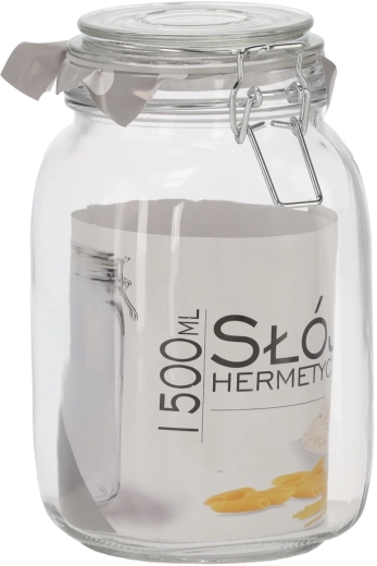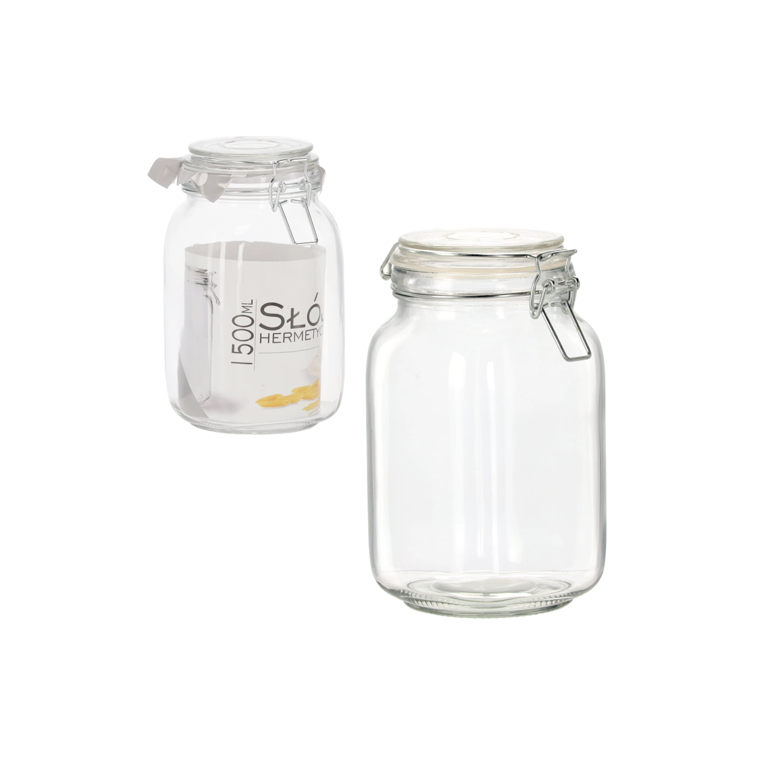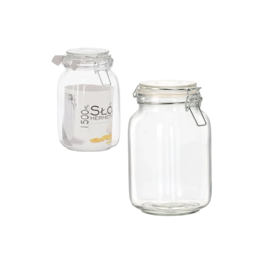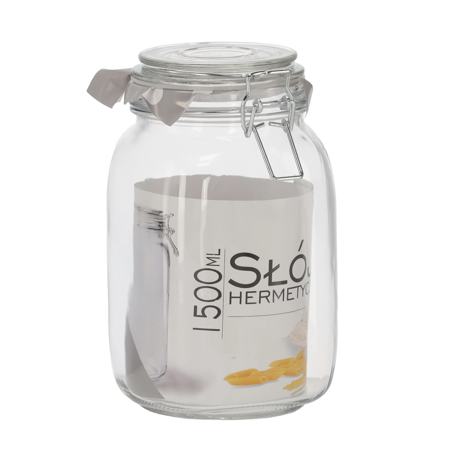 Praktikus, 1,5 l űrtartalmú, mechanikus zárással ellátott, négyzetes üveg, amely kiváló tömítést és a tárolt élelmiszerek hosszan tartó frissességét biztosítja. Ideális mézhez, lekvárokhoz, fűszerekhez és egyéb finomságokhoz a konyhába vagy a kamrába, emellett stílusos dekorációs elemként is szolgál.