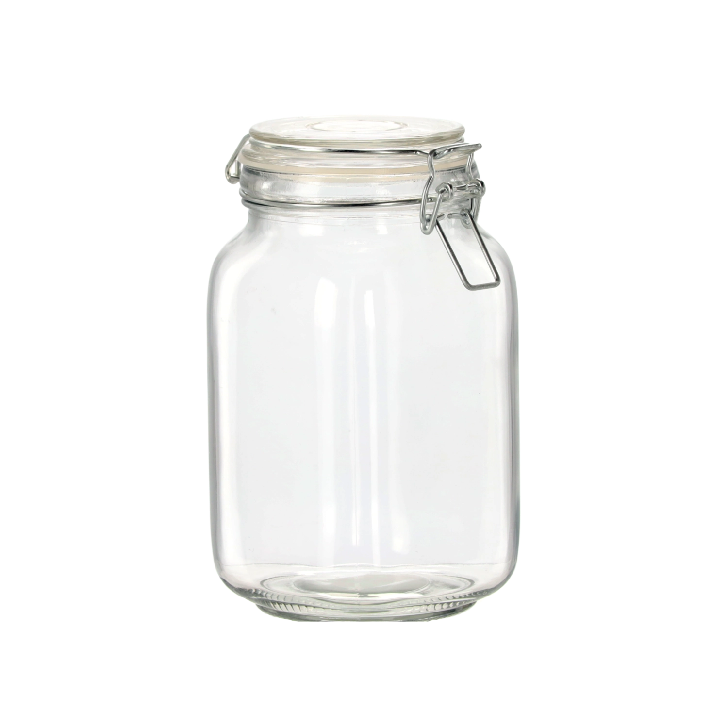 A 1,5 literes űrtartalom elegendő helyet kínál nagyobb készletekhez, és az üveg könnyen tisztítható és tölthető. A négyzetes forma helyet takarít meg a kamrában és a konyhai polcokon, továbbá kiváló házi finomságok ajándékcsomagolásához is.
