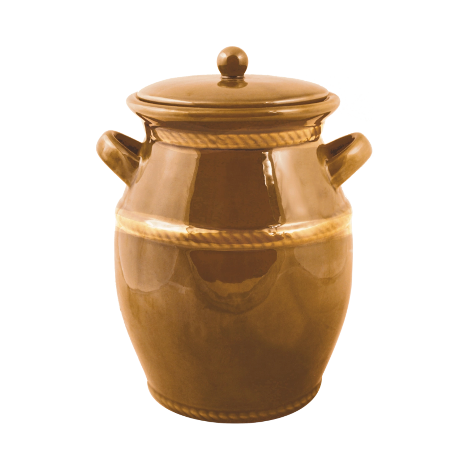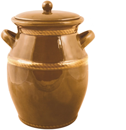 Ez a minőségi, 4 literes kerámia erjesztőedény megbízható segítőtárs a házi savanyú káposzta, uborka és más, tartósítószer nélküli fermentált élelmiszerek készítéséhez. A mézszínű máz védi a felületet, megkönnyíti a tisztítást, és kiemeli a hagyományos megjelenést, amely bármely konyhába illik.