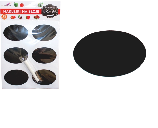 A praktikus 6 × 4,8 cm-es formátum a legtöbb szokványos üveghez és dobozhoz illik. Az öntapadós táblafólia jól tapad, tartja a formáját, és kontrasztos hátteret biztosít az olvasható feliratokhoz.