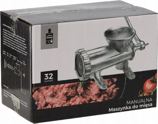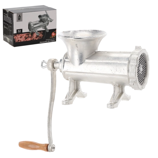 A masszív, kiváló minőségű öntöttvasból készült 32-es kézi húsdaráló megbízható segítőtárs minden konyhában. Kínálja a magas tartósságot, a precíz darálást a kemény acélkéseknek köszönhetően, valamint a stabil asztali rögzítést a kényelmes és biztonságos munkához.