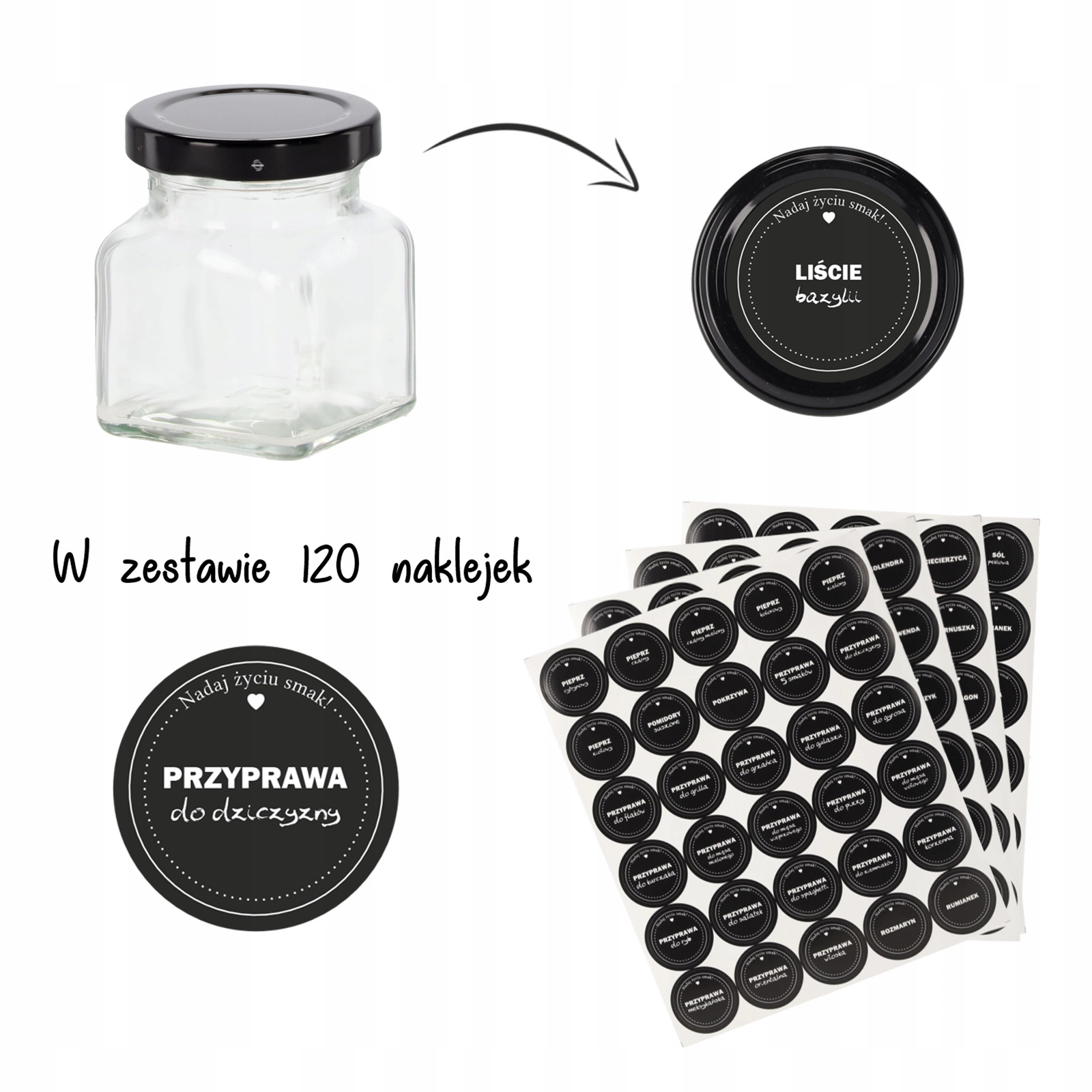 A csomagban kerek, fekete címkéket talál, amelyekkel gyorsan feliratozhatja az üvegek tartalmát. Alakítson ki rendszert, és találja meg a megfelelő fűszert elsőre.