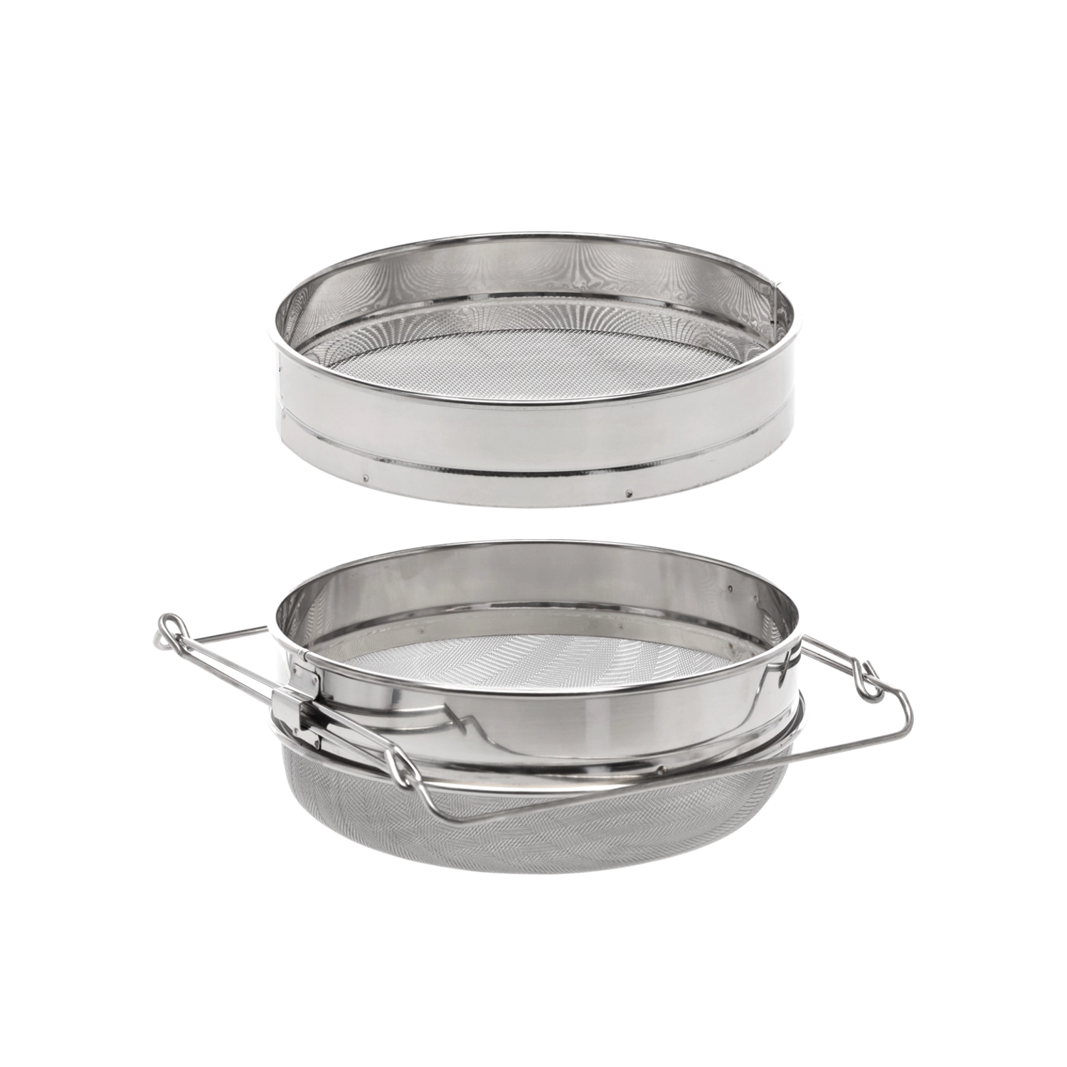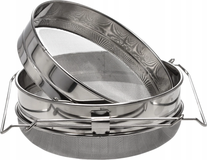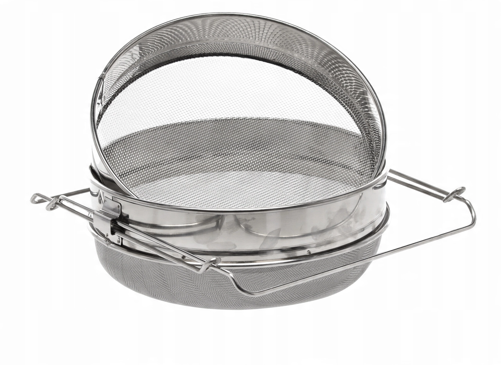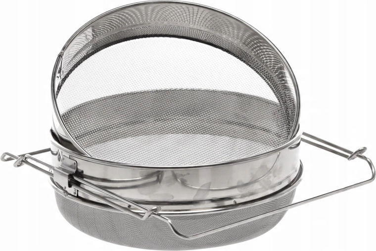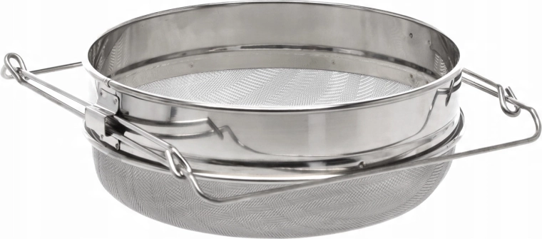 A 24 cm átmérőjű professzionális mézszűrő minőségi rozsdamentes acélból készül, amely higiénikus, korrózióálló és könnyen karbantartható. A különböző sűrűségű kettős szűrőrendszer hatékonyan választja le a viaszt és az apró részecskéket, így tiszta, áttetsző mézet kap minimális erőfeszítéssel.