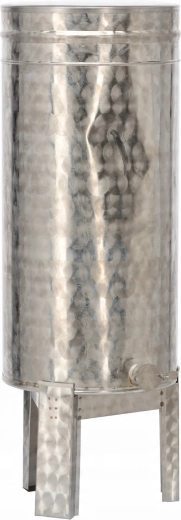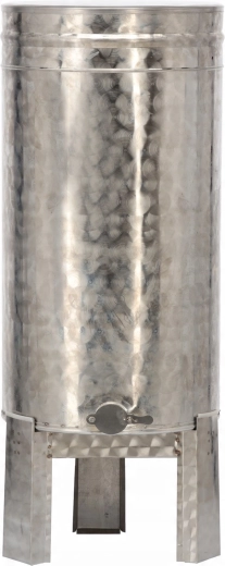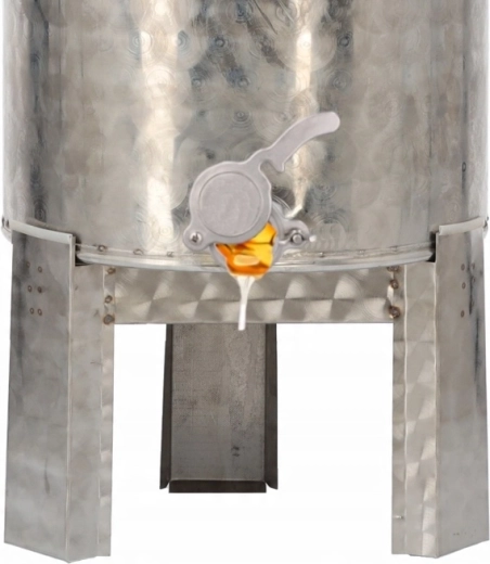 Masszív rozsdamentes acél tartály kalapácslakkos felülettel, korrózióálló, könnyen tisztítható, és kiválóan illik bármely méhészműhelybe. A megemelt állványnak köszönhetően a kifolyó alatt elegendő szabad magasság áll rendelkezésre az edényeknek, így a csapolás tisztán, kilöttyenés nélkül történik.