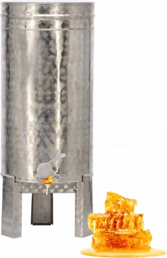 Professzionális rozsdamentes mézérlelő 100 l űrtartalommal, ideális méz tárolására és csapolására. A stabil állvány kényelmes munkamagasságot biztosít, a tömítő fedél megőrzi a higiéniát és a frissességet, a praktikus leeresztő csap pedig egyenletes és pontos adagolást tesz lehetővé.