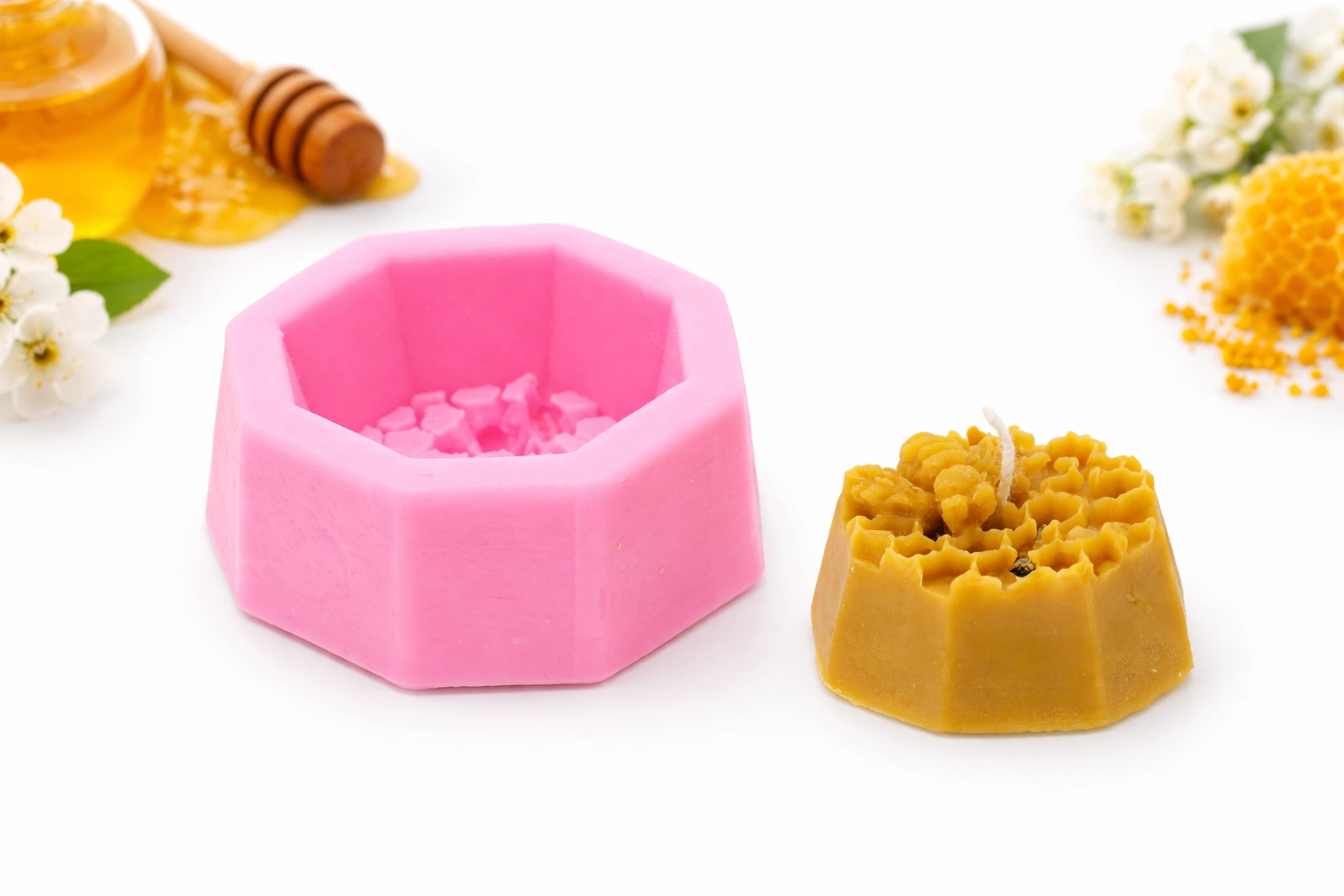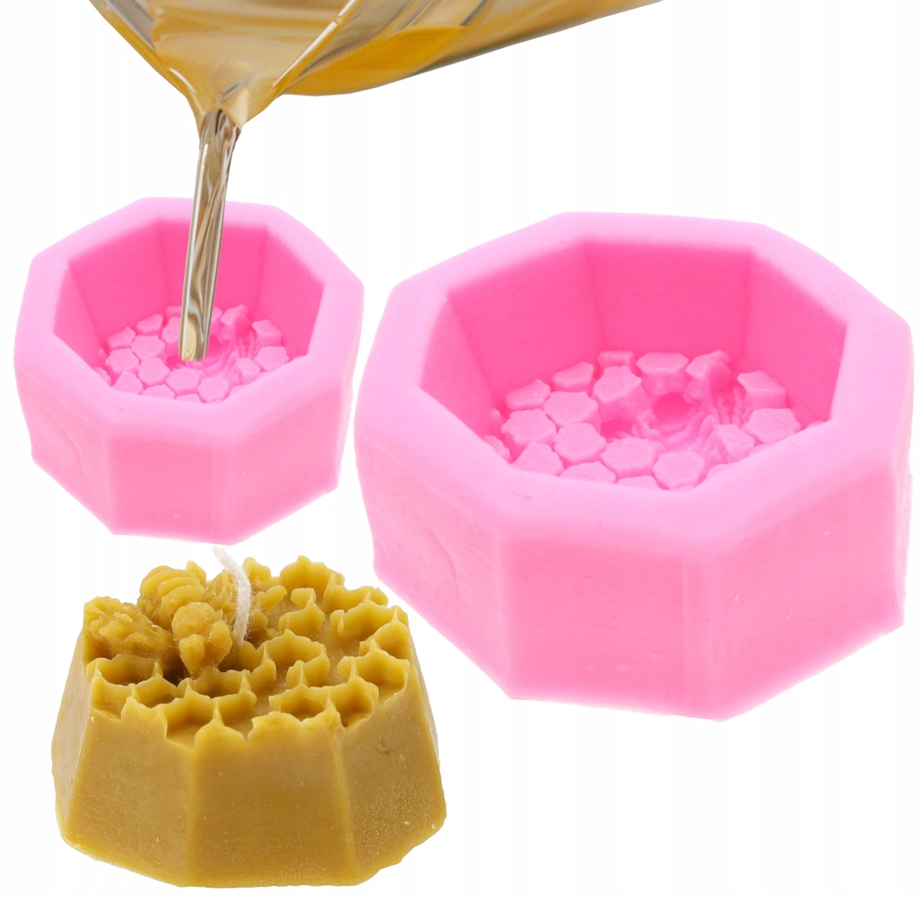 Fedezze fel a gyertyakészítés örömét ezzel a tartós, nyolcszög alakú szilikon formával, mézes méhsejt és méhecske mintával. Az anyag rugalmas, hőálló, és biztosítja a könnyű kiemelést sérülés nélkül, még a finom struktúráknál is.