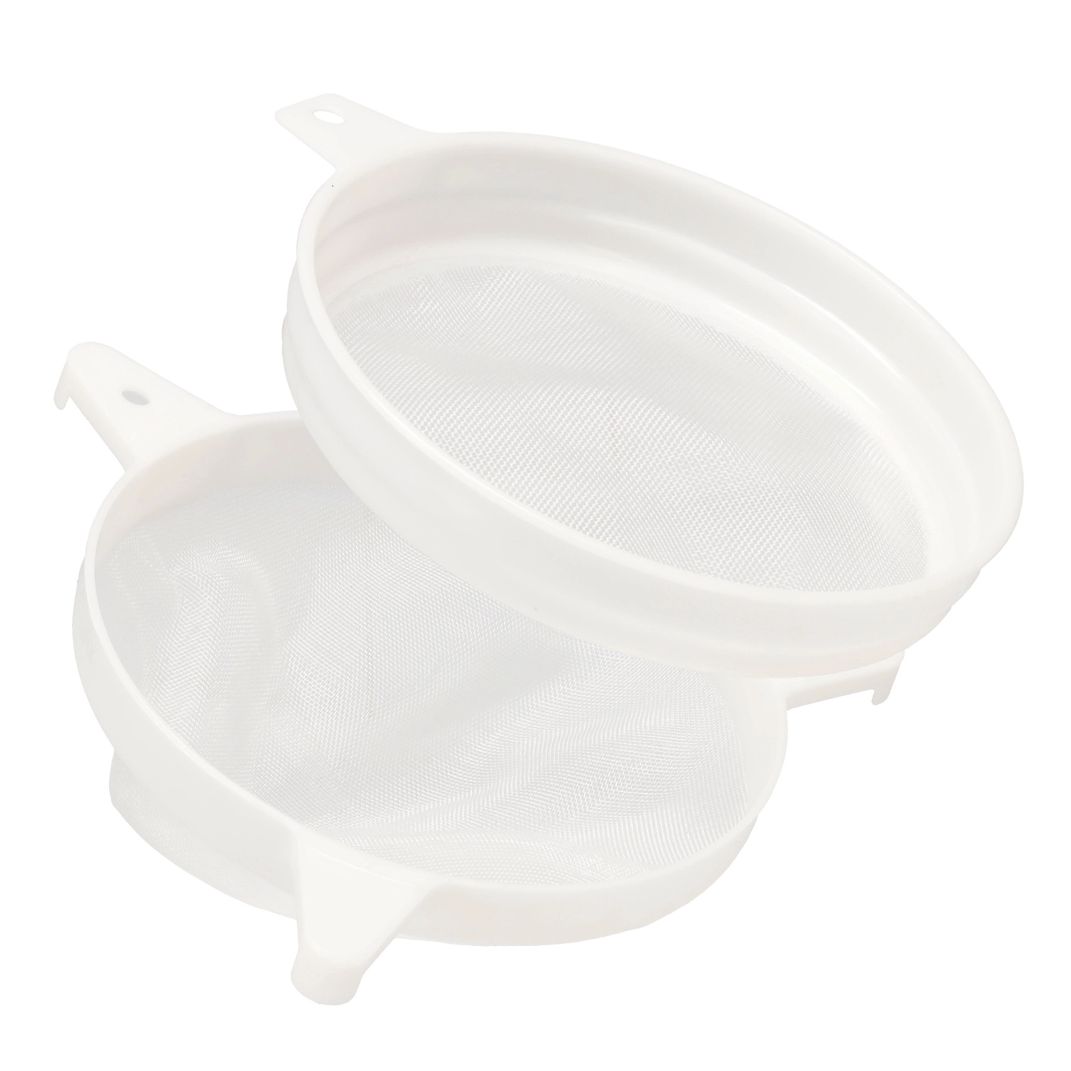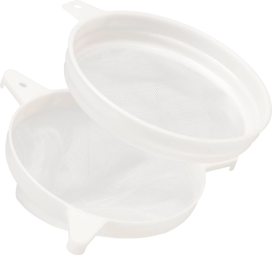 A dupla nylon mézszűrő két különböző sűrűségű hálót kombinál a fokozatos szűréshez – először felfogja a nagyobb szennyeződéseket, majd finomra tisztítja a mézet, kristálytiszta állagot eredményezve. A nylon könnyű, tartós és egyszerűen tisztítható, ezért alkalmas a teljes szezonban történő rendszeres használatra.