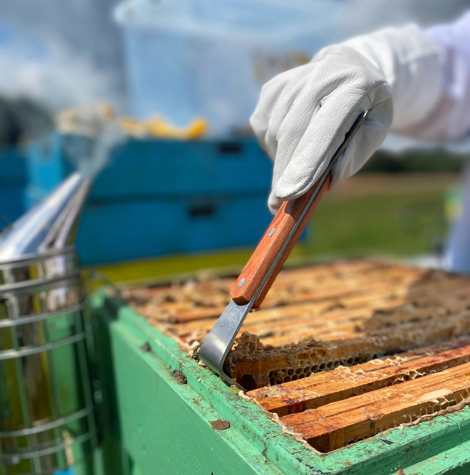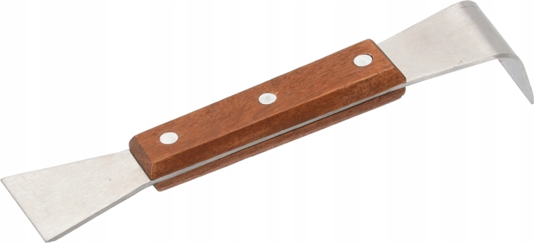 A formázott kampó és a lapos él karerőt biztosít a propolisszal összeragadt keretek biztonságos szétválasztásához a kaptár sérülése nélkül.