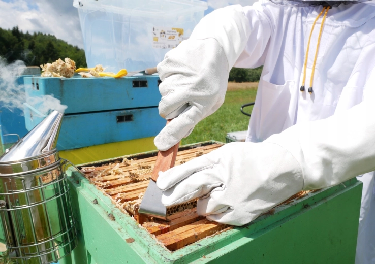 A rozsdamentes acél ellenáll a korróziónak és könnyen tisztítható, így az eszköz bírja a mindennapi munkát a méhészetben.